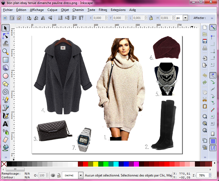 Une fois les photos retouchées, j'ai parfois besoin de faire des montages, comme lors de mon dernier article sur le gommage Hellobody, ou pour les tenues Ebay du dimanche. Inkscape est vraiment l'idéal pour ça ! Ce logiciel gratuit est très pratique à prendre en main.