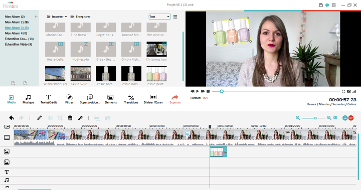 Un truc assez pratique aussi si vous devez insérer des images dans vos vidéos ou si vous filmez sur un fond vert, c'est la transparence du fond de l'image. Par exemple, ici, je tournais ma wishlist de Noël et je vous parlais des vernis Essie. J'ai donc inséré les vernis dans la vidéo, mais le fond blanc gâchait un peu l'image.