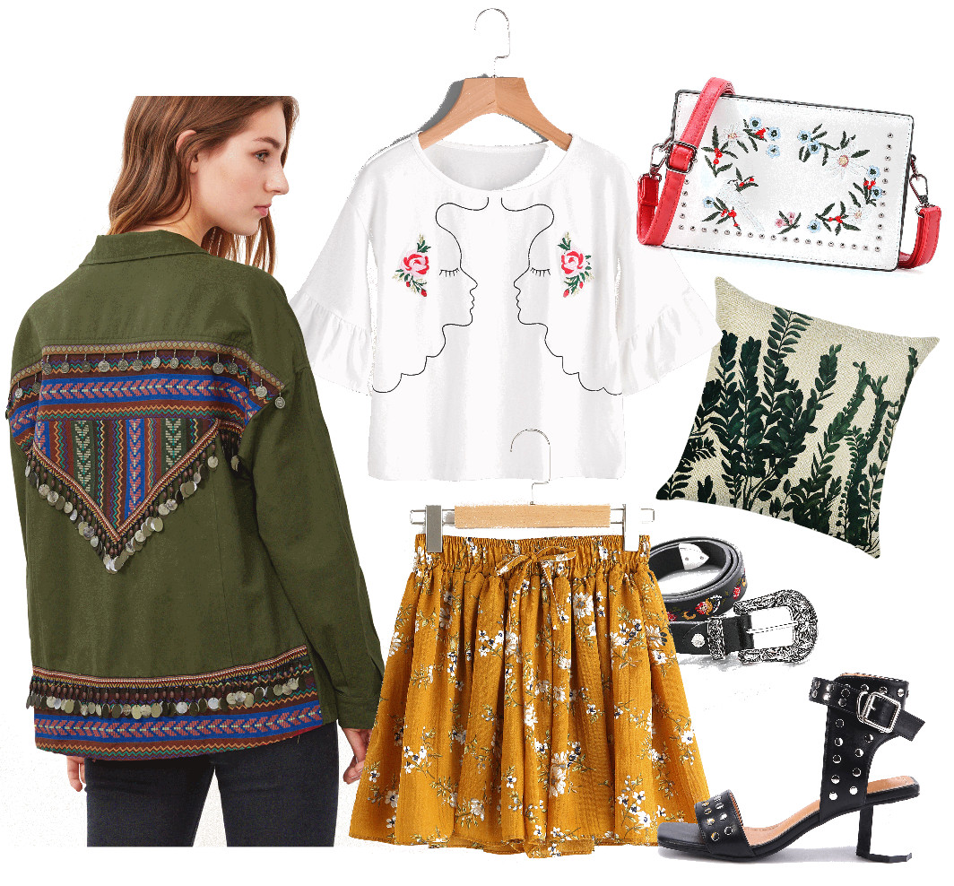 On sort de nos retranchements et on mise tout sur la couleur ! Cette jupe/short est la pièce tendance qu'on peut facilement adopter. J'étais obligée de vous mettre dans la sélection cette blouse qui m'a fait complètement craquer : les manches, la couleur, les broderies.. Il est juste parfait et assez original ! Un bomber kaki vient compléter le tout, à porter sur les épaules quand le temps se rafraîchit en soirée. Niveau accessoires, on privilégie les pochettes aux gros sacs : c'est plus pratique, moins encombrant et au moins on se concentre sur les choses essentielles. Les chaussures : une tuerie ! Je pense les commander, j'adore la forme et le détail des rivets. La ceinture me tente pas mal également, j'adore la boucle et le côté brodé. Et sinon, Shein a lancé une catégorie maison, où l'on trouve notamment de très jolis coussins, très tropicaux comme celui ci. Bon shopping et passez un bon lundi férié !