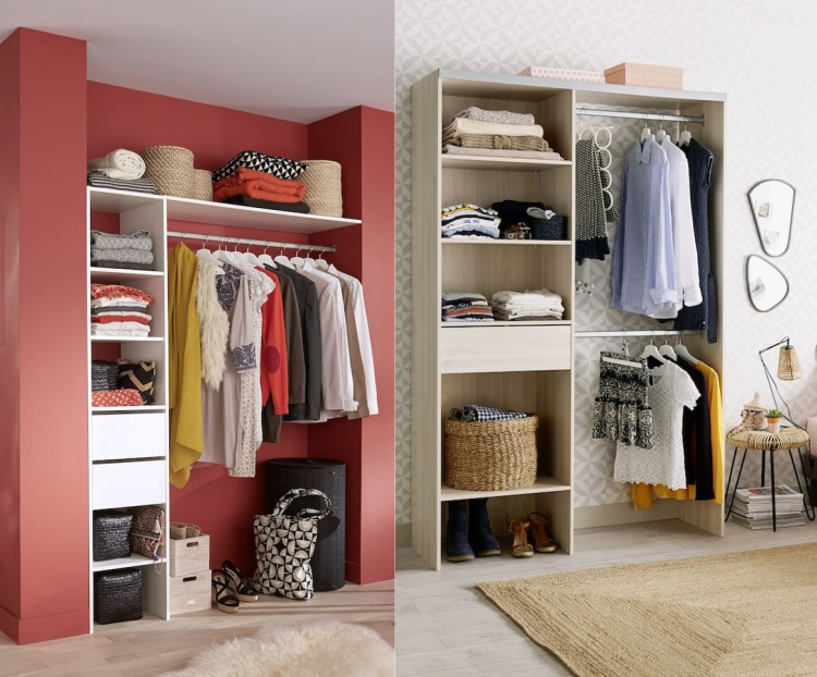 Un maximum de paniers et de rangements pour cacher les accessoires et certains vêtements. J'aime beaucoup associer des paniers en rotin naturel, noirs, ronds, carrés..