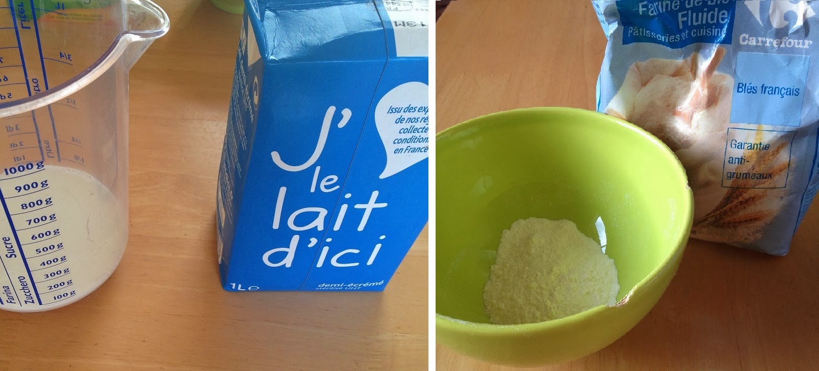Ajouter au mélange une petite touche de lait (la recette originale prévoit 2cl), la farine, et mélanger pour obtenir une pâte bien lisse.
