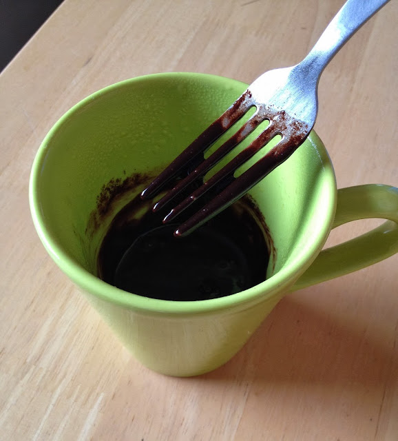 Passer la tasse pendant 30 secondes au micro-ondes, et mélanger avec une fourchette.