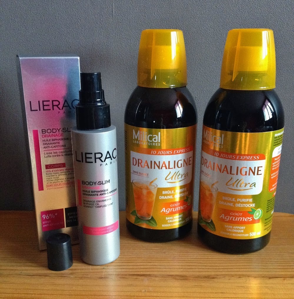 * Le sirop Drainaligne (via Parapharmazen) : ce produit se présente sous la forme de grosses bouteilles de sirop, pour 20 jours d'utilisation. Il faut diluer un bouchon de produit chaque jour dans un litre d'eau et boire au cours de la journée. J'avais pris goût agrumes, et j'ai beaucoup aimé le gout. Je n'avais pas l'habitude de boire beaucoup à l'époque, ce produit a donc été bénéfique à ce niveau là. Par contre, si vous prenez ce produit et que comme moi vous ne buvez pas tellement habituellement, préparez-vous à passez votre vie à faire pipi..
