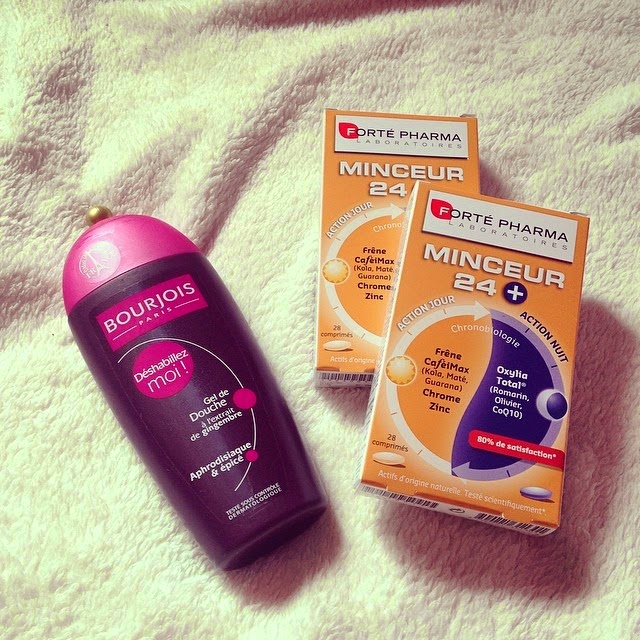 * Les comprimés Minceur 24+ de Forte Pharma (via LaSanté.net) : il s'agit de comprimés jour et de comprimés nuit, à prendre avant le petit déjeuner et le dîner. Je les ai trouvés sur le site LaSanté.net, un excellent site de produits de pharmacie. J'ai testé une cure de presque un mois, en plein au moment où j'ai commencé à vraiment être motivée. Donc oui, j'ai maigris pendant le mois où je les ai pris, mais j'ai fait beaucoup plus attention à mon alimentation.