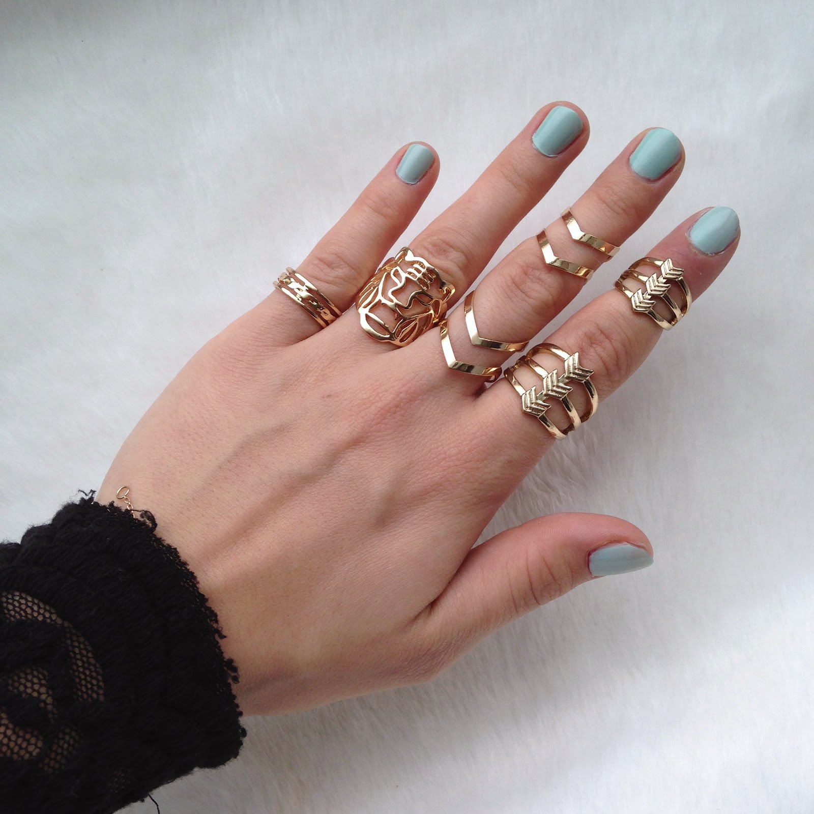 J'adore les bagues! Elles sont trop jolies! Et ton vernis c'est lequel? ^^Il est trop beau :)