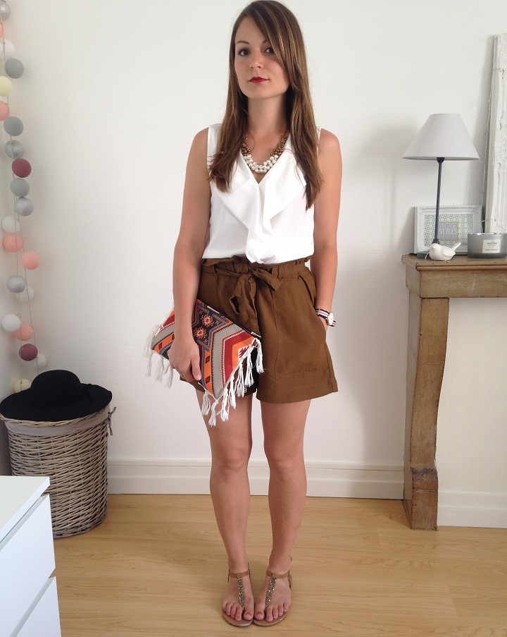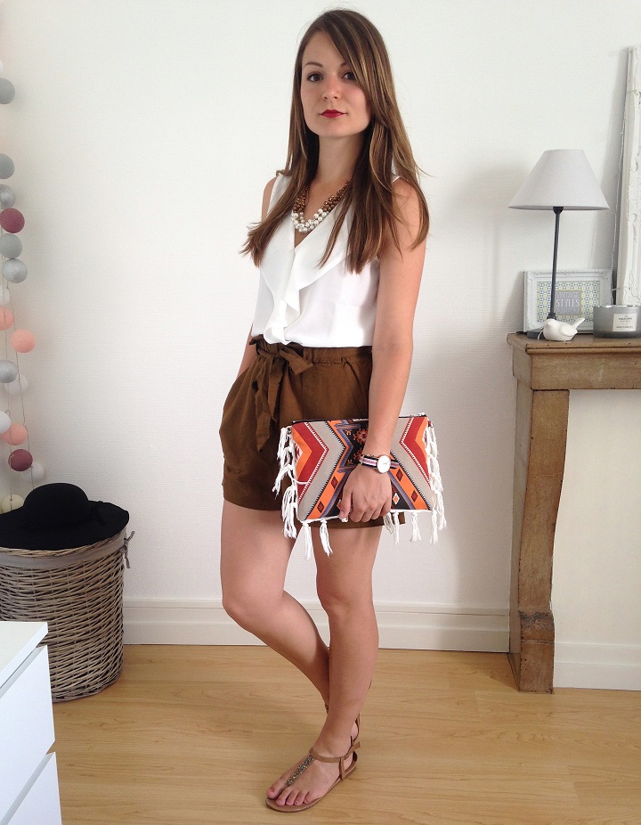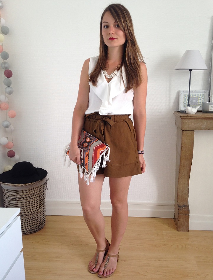 J'ai une envie effrénée de short en ce moment ! Avec cette chaleur, un joli short fait partie des choses les plus agréables à porter. J'ai trouvé celui-ci sur le site de H&M et je trouve que c'est un bon basique à avoir dans sa penderie pour les jours où on a pas envie de se prendre la tête pour trouver une tenue sympa. Je l'ai assorti à ce joli haut plastron Aktuel Mode et à une touche ethnique.