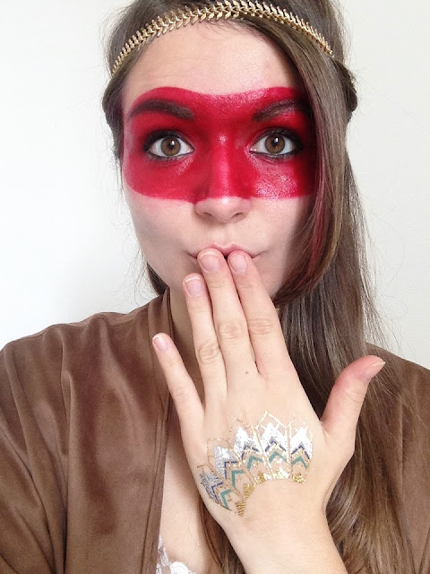 On a tous les accessoires qu'il faut à la maison pour réaliser un costume et un make-up d'indien d'Amérique.