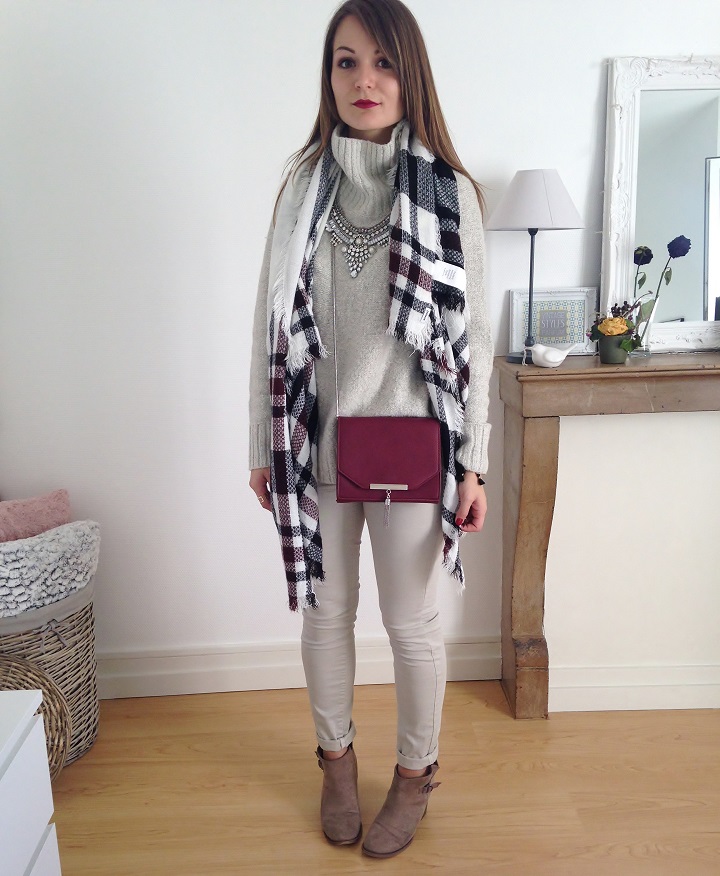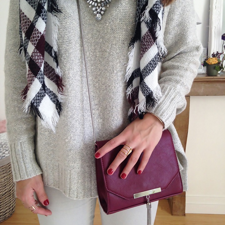 Joyeux Halloween à tous ! Pour moi, pas de costume cette année, juste un pull hyper doux et bien chaud et quelques touches de bordeaux. Je suis fan de ma nouvelle écharpe et de ce petit sac trouvé chez Pimkie ! D'ailleurs restez dans le coin, un haul se prépare.