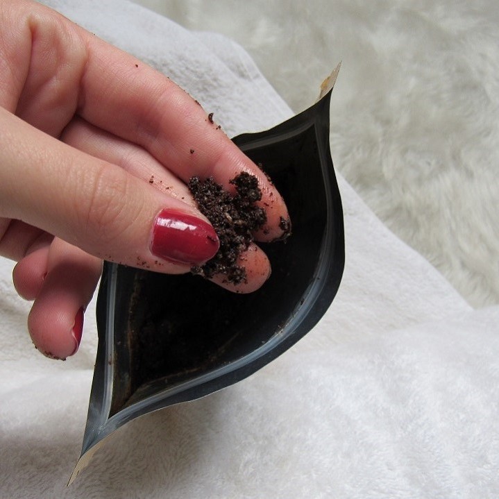 - Le gommage s'applique facilement, gomme efficacement la peau grâce à ses gros grains de café, sans pour autant agresser l'épiderme.