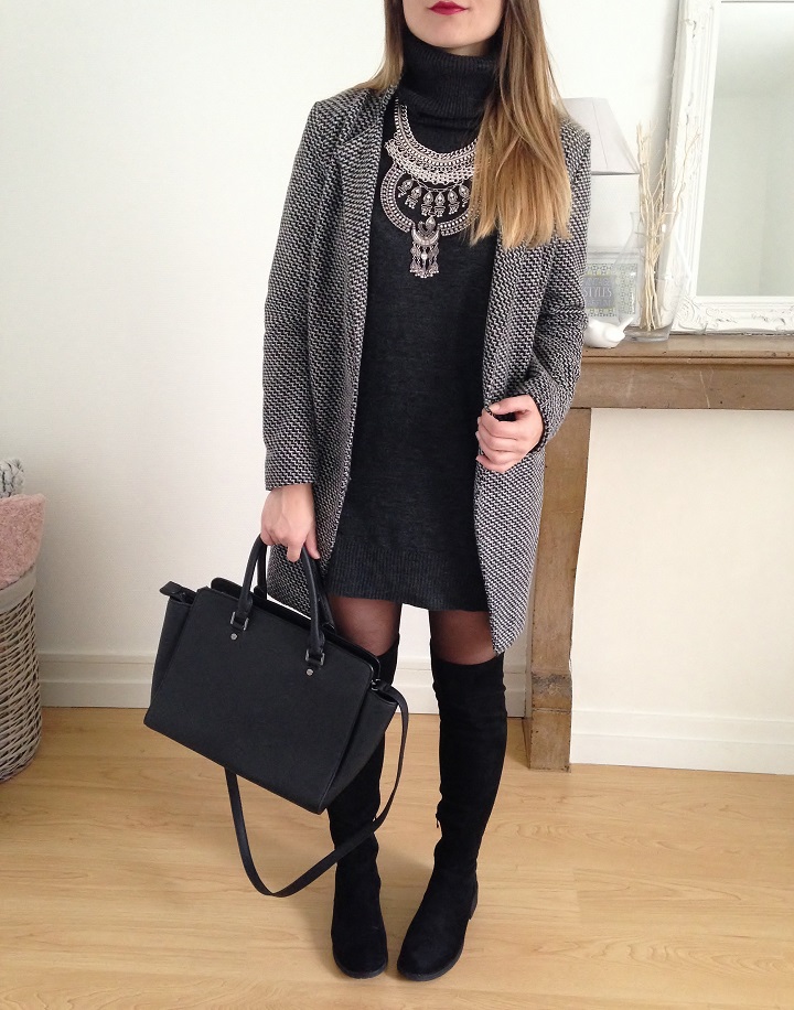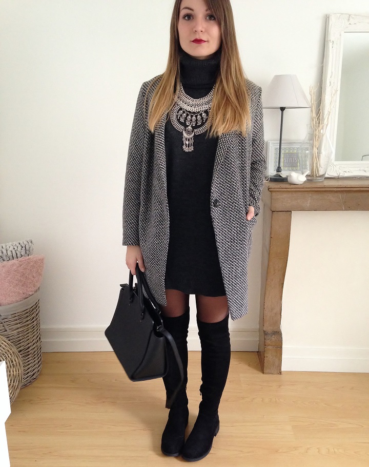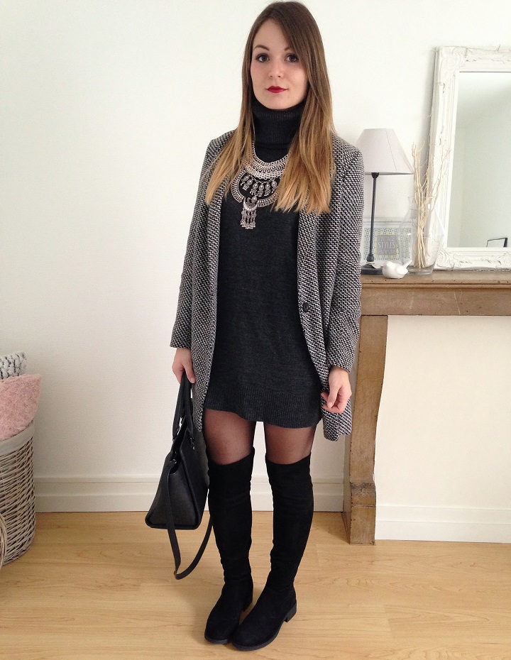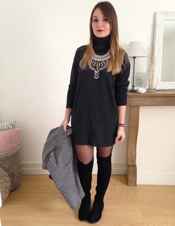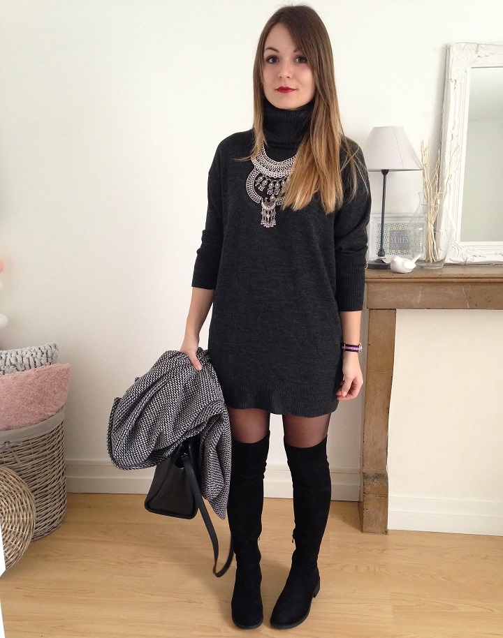 Robe pull et cuissardes font toujours bon ménage. J'ai trouvé la robe sur Asos et elle est parfaite pour l'hiver avec son joli col roulé.
