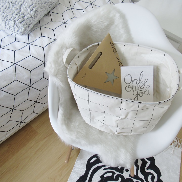 DÉCO : Panier en toile géométrique, Etoile en carton dur à monter soi-même, Carte à encadrer. Merci à la gentille boutique Mon Petit Cabanon !