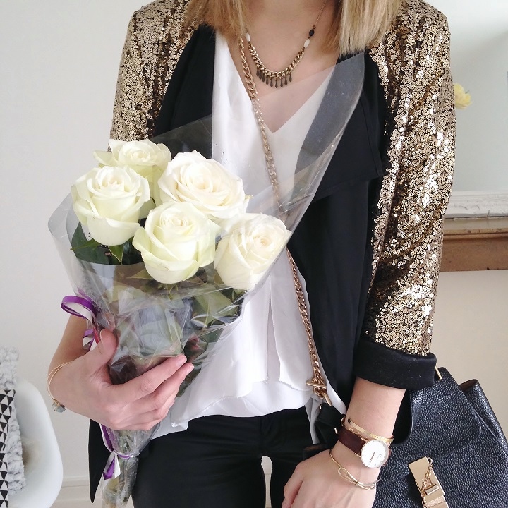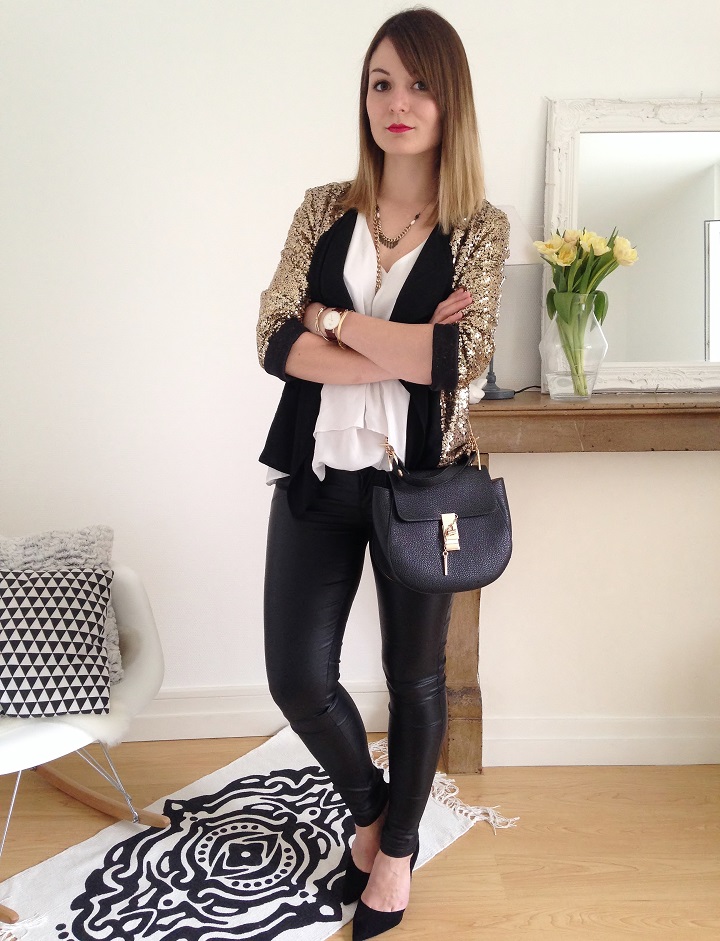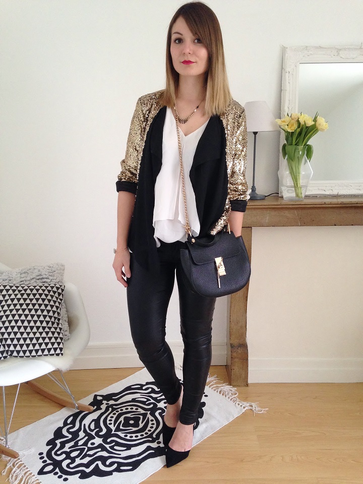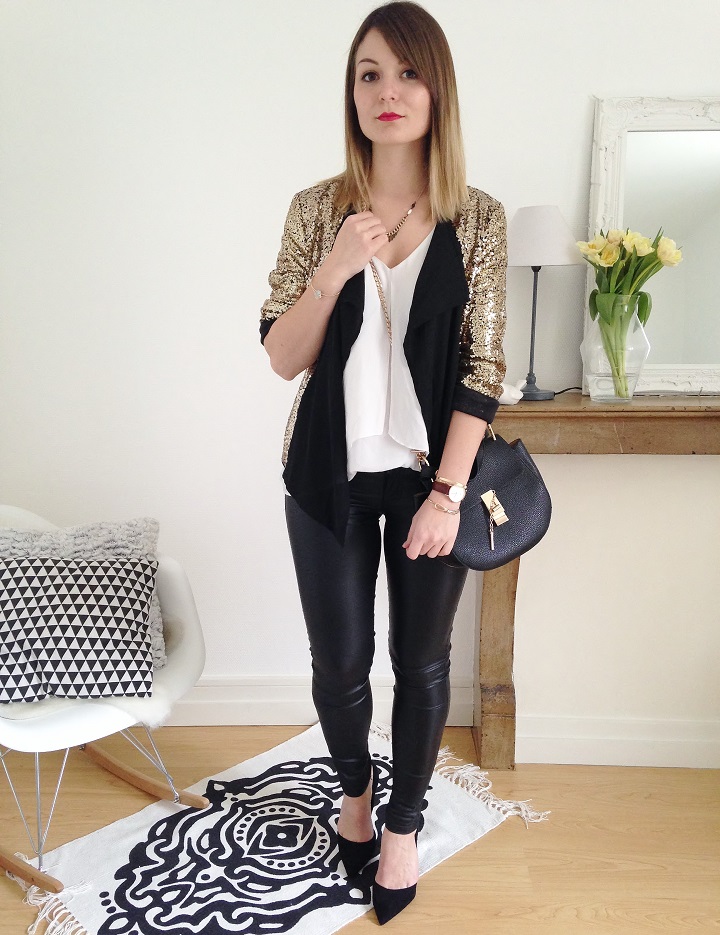 Tenue toute en sequins pour ce samedi soir. J'avais trouvé cette veste sur She-In, et j'en suis plutôt ravie ! Je l'ai tout de même débarrassée de ses grosses épaulettes (god, peut-on faire des épaulettes aussi grosses !), trop imposantes (et inconfortables) à mon goût. Pour le reste, rien de très extravagant, avec une veste comme ça, on mise sur la sobriété !