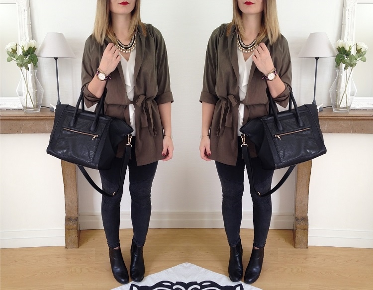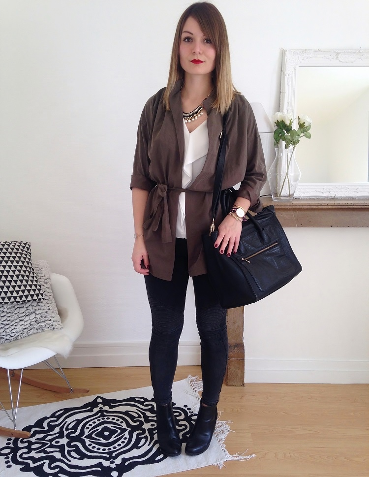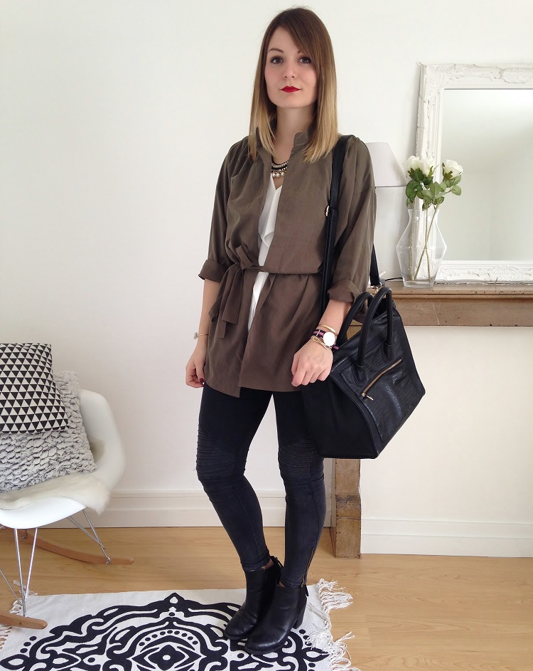 Encore cette veste ! Je vous vois venir.. Mais quand on aime on ne compte pas, et en plus elle n'est pas portée pareil, regardez, j'ai mis la ceinture cette fois-ci. Je me cherche des excuses ? Sans doute.. J'aime cette veste ? Irrésistiblement.