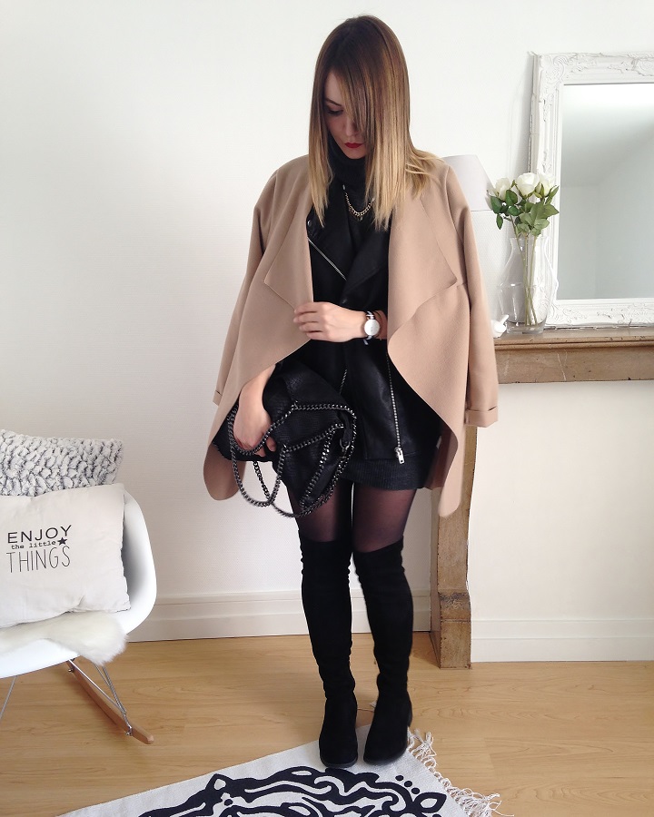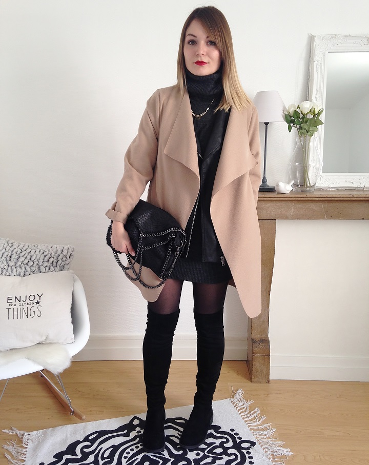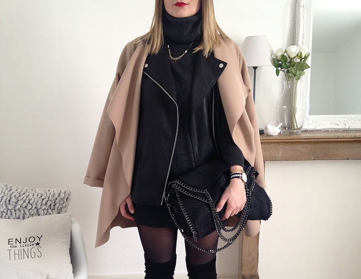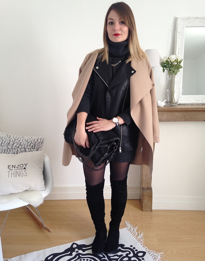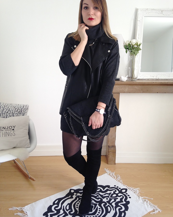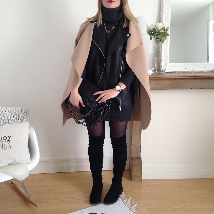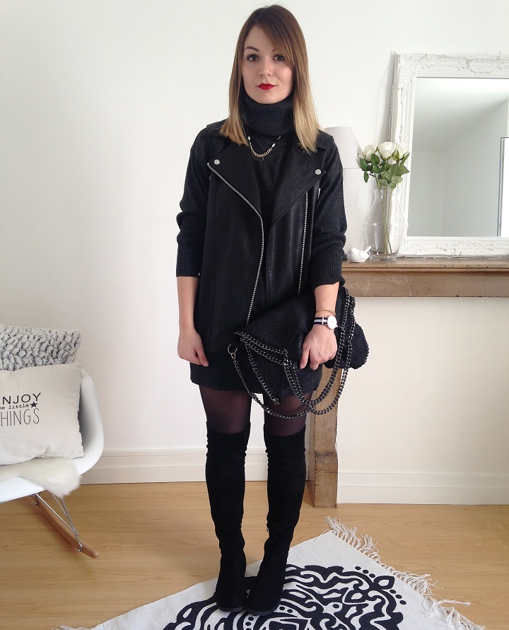 RépondreSupprimerJ'aime beaucoup l'association entre la robe pull et le perfecto sans manche, c'est canon !