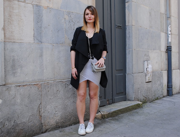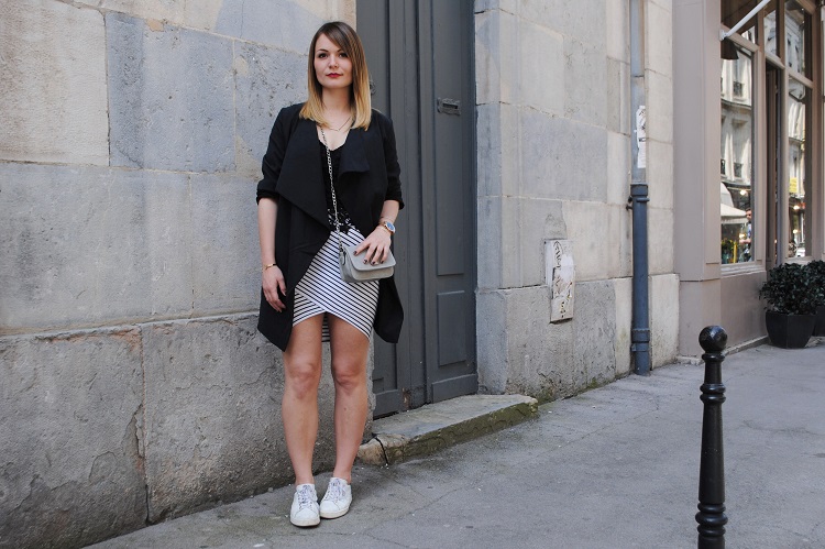 Du drapé, de la rayure.. J'ai des envies de looks minimalistes mais qui sentent bon le printemps ! Toujours avec un peu de dentelle pour la note de féminité et des sneakers aux pieds pour arpenter les rues du centre-ville.