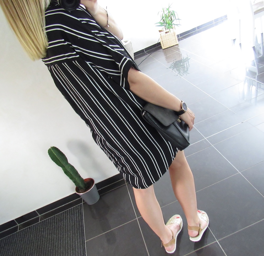 Aucune déception concernant cette tunique noire et blanche, la qualité est au rendez-vous (bien qu'un peu transparente, mais un fond de robe peut être facilement mis dessous) et la taille unique conviendra aux personnes allant du S au L. Le côté asymétrique apporte un vrai petit plus à cette tunique en plein dans la tendance de la saison (rayures graphiques et association du noir et du blanc : effet garanti).