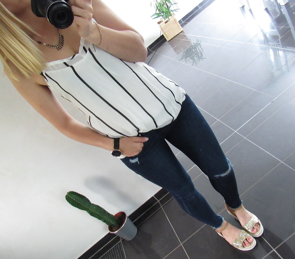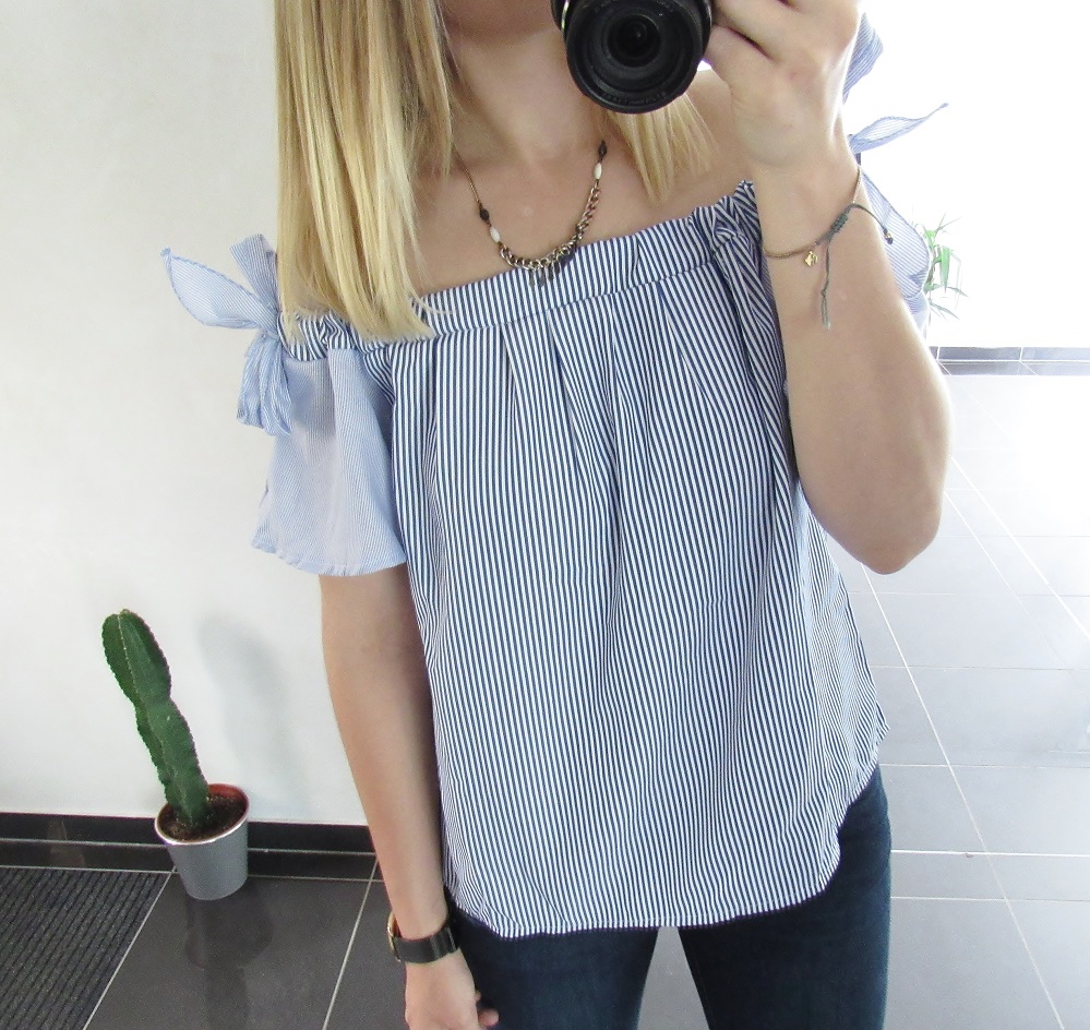 Le top est hyper sympa, la qualité un peu limite (le tissu ne fait pas très qualitatif), et petit regret la coupe n'est pas forcément avantageuse : un peu trop longue et trop serrée au niveau des hanches. J'ai pris un M et la taille est bonne. Le dos est très joli, avec sa bande blanche.