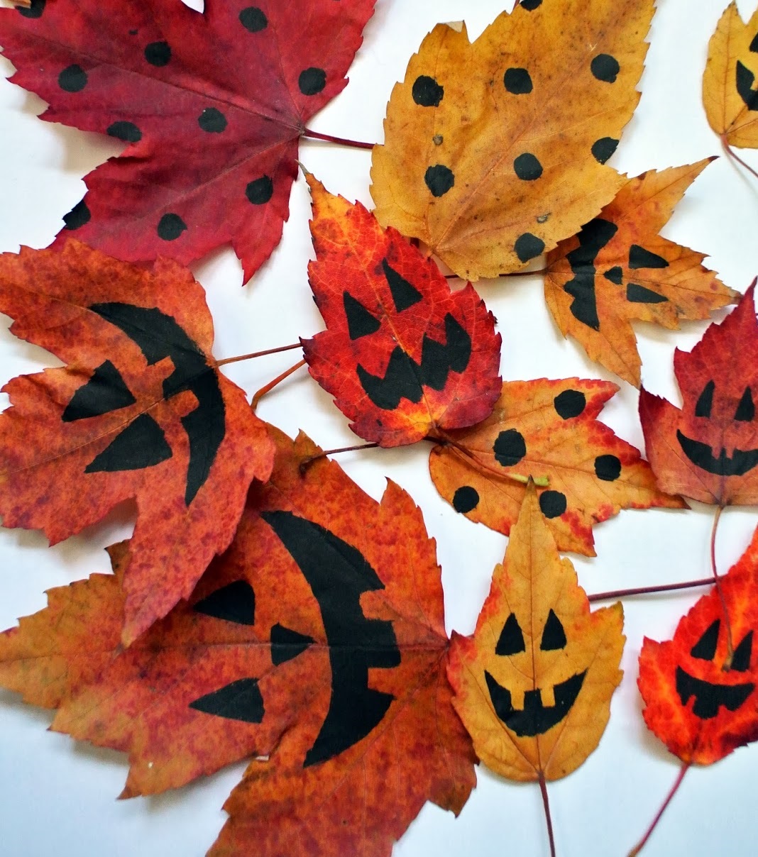 On s'inspire : des feuilles automnales peintes.