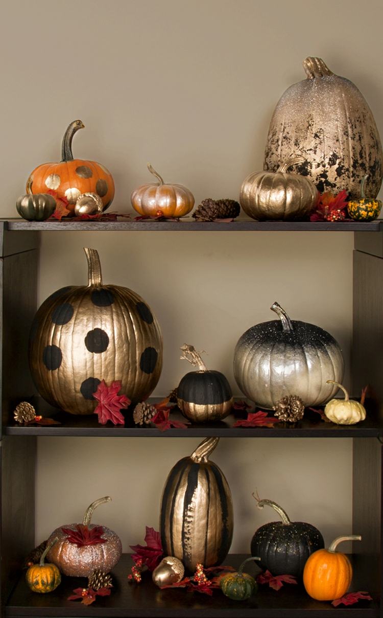 On s'inspire : des citrouilles dorées, de la disposition sur une étagère.