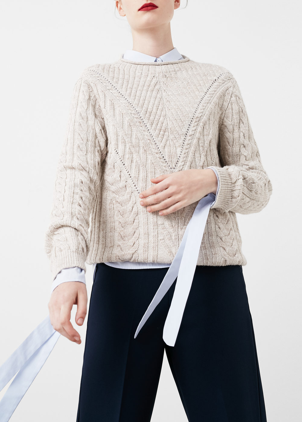 Pull torsadé beige Mango - 39.99 €