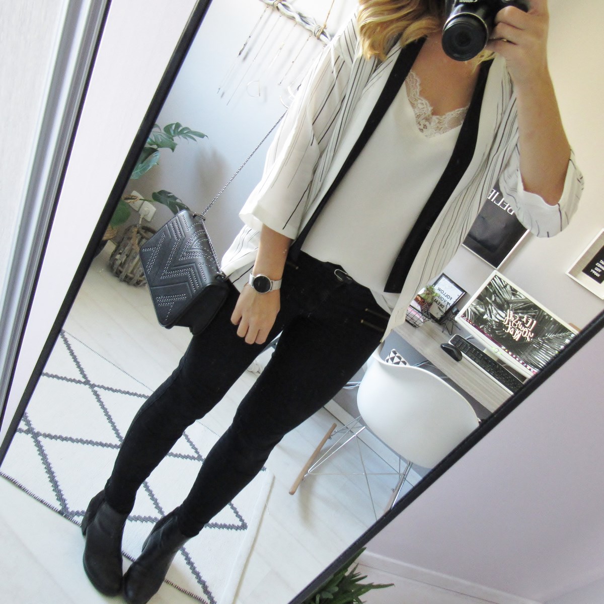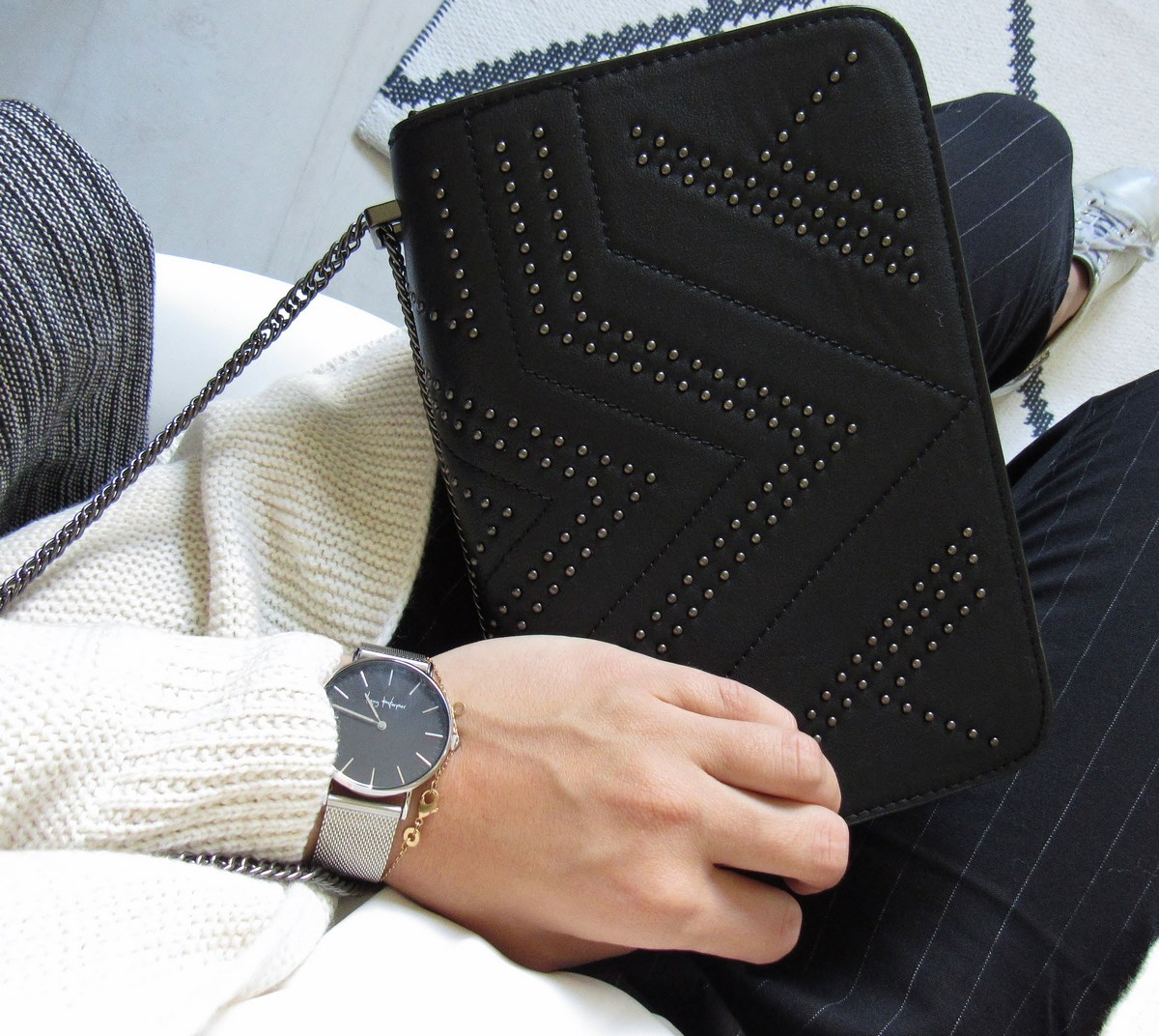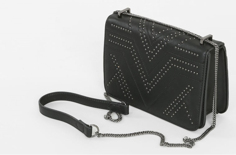 Premier achat, un sac façon cuir clouté, un accessoire qui risque de ne pas me quitter de la saison ! En ce moment je ne porte que des pochettes ou des petits sacs à bandoulière comme celui-ci, qui ne permettent certes d'emporter que le minimum, mais qui sont tout de même bien pratiques.