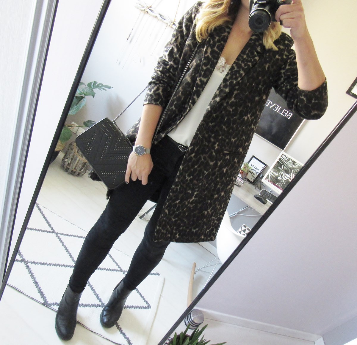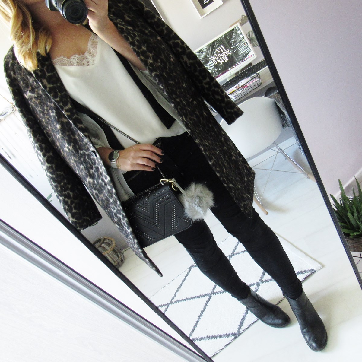 Ma pièce coup de cœur du jour, un manteau drap de laine léopard. Mais un léopard un poil foncé, à la coupe parfaite et qui est top pour la demi-saison, voir pour l'hiver avec un gros pull en dessous. Niveau taille, au lieu d'un 36 j'ai pris un 40 (dernière taille restante), mais un 38 aurait été parfait, surtout au niveau des manches.