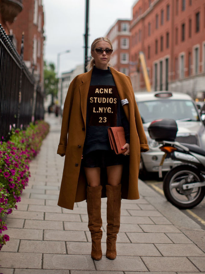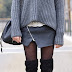 Autre association inratable : la robe pull. On ne la choisit pas trop près du corps, si possible en grosses mailles et idéalement dans un coloris proche des cuissardes si celles-ci sont nudes.