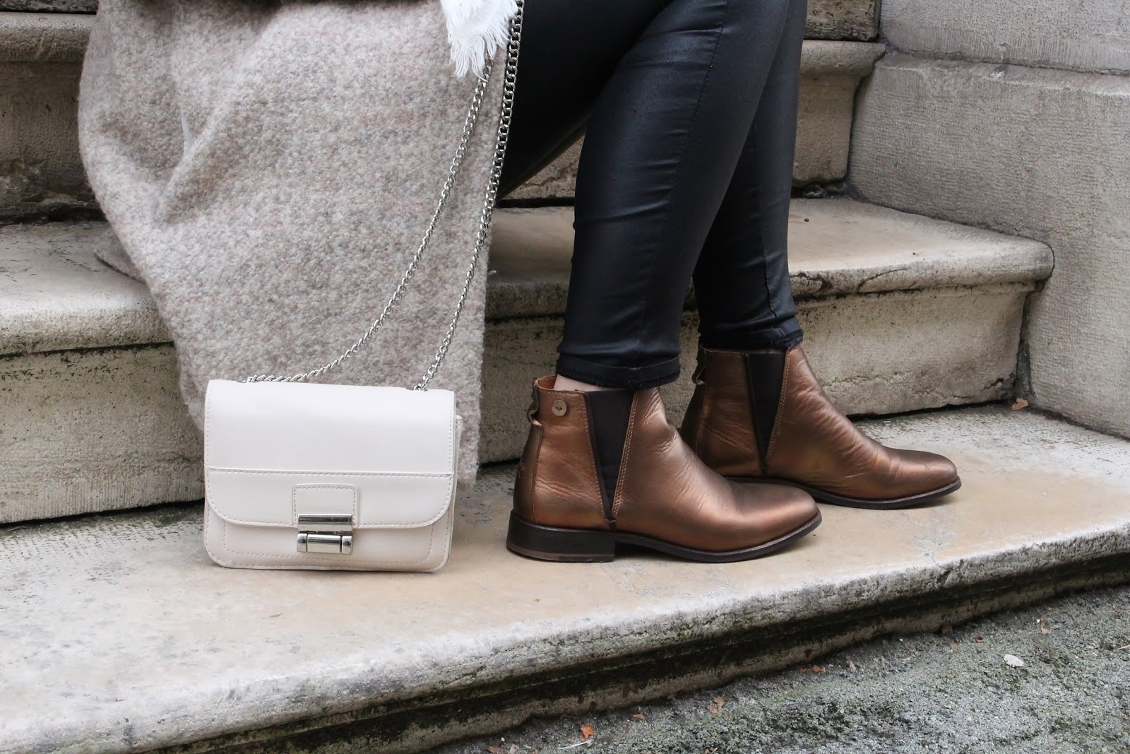 Première sortie de mes bottines Faguo : le côté bronze m'effrayait un peu, mais une fois aux pieds j'adore. Associées à un tregging et à du beige, j'ai trouvé l'association parfaite pour porter ces jolies boots avec facilité ! Je vous mettais le même modèle à gagner sur Instagram, et bonne nouvelle, le tirage au sort se fera dans la soirée.. Rendez-vous sur Insta et sur snap pour découvrir l'heureuse gagnante. Merci au passage à Léa pour ces jolies photos.