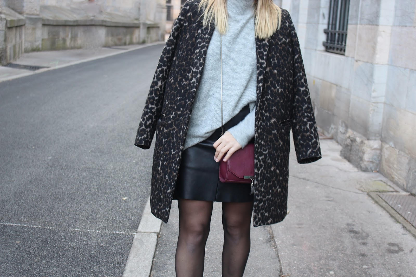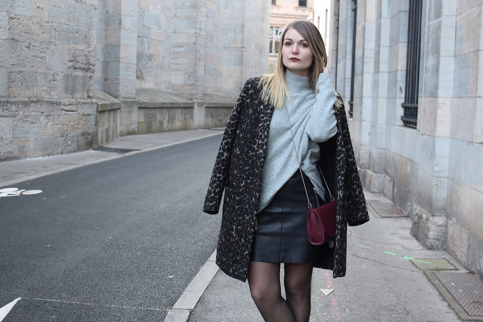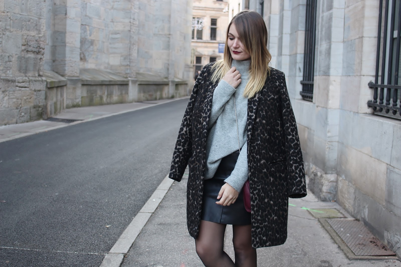 Parmi mes pièces fétiches de cet hiver je mets en première position et sans hésiter ce manteau léo ! Rajoutez une pointe de cuir, un gros pull et vous obtiendrez un look sympa et sans prise de tête. Crédit photo : Comptoir au Féminin.