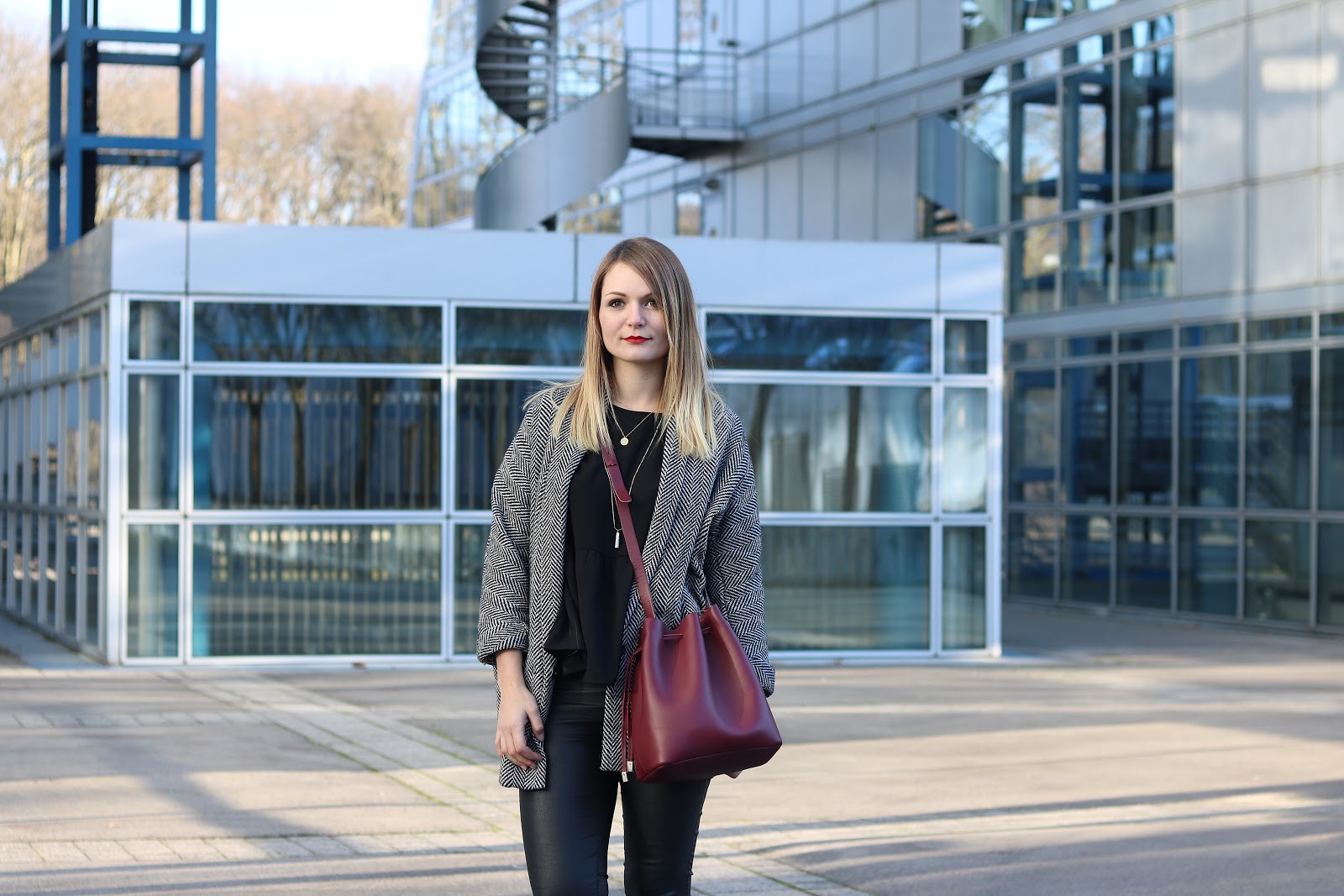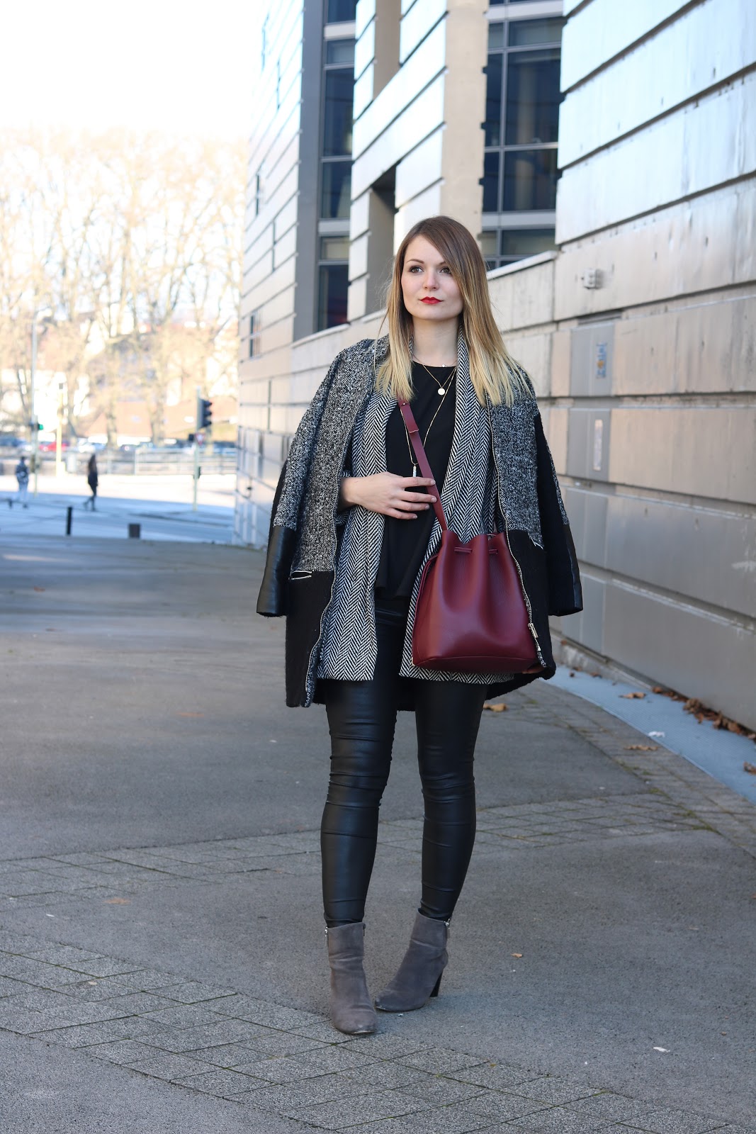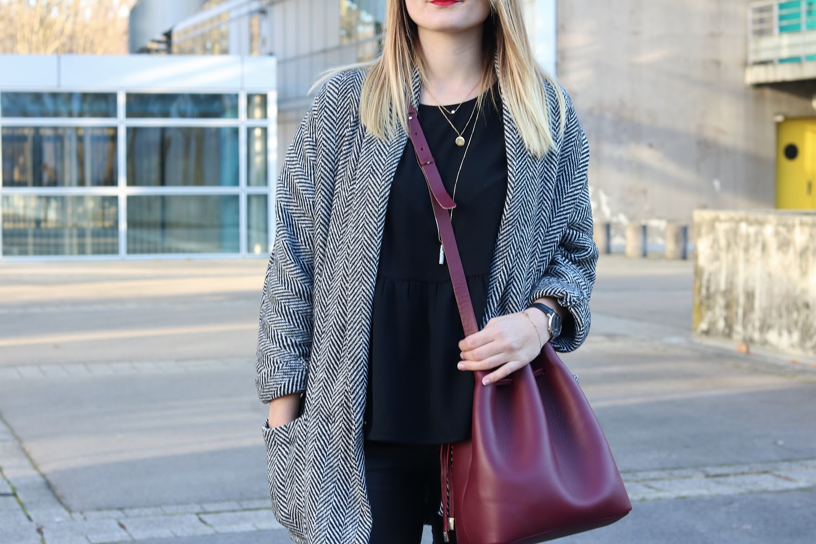 De jolies photos faîtes par Raphaëlle Lou Da Silva à La City, avec en guest mes nouveaux amours : ces bottines chevilles et ce sac bordeaux Jonak. Une vraie découverte et un vrai coup de cœur sur ces pièces tellement chics et tendances. Et qui dit tenue de favoris dit forcément nouvelle et jolie veste Le Phare de la Baleine, qui joue ici les superpositions avec le manteau.