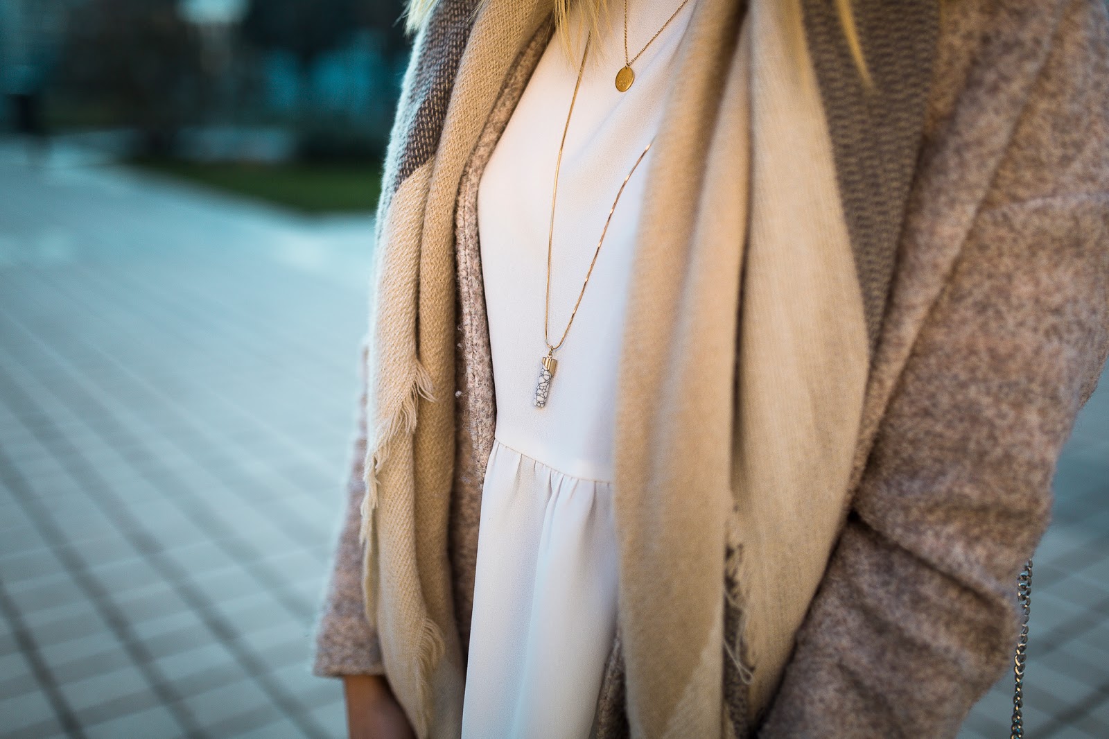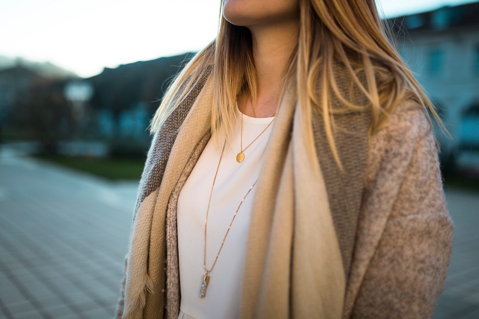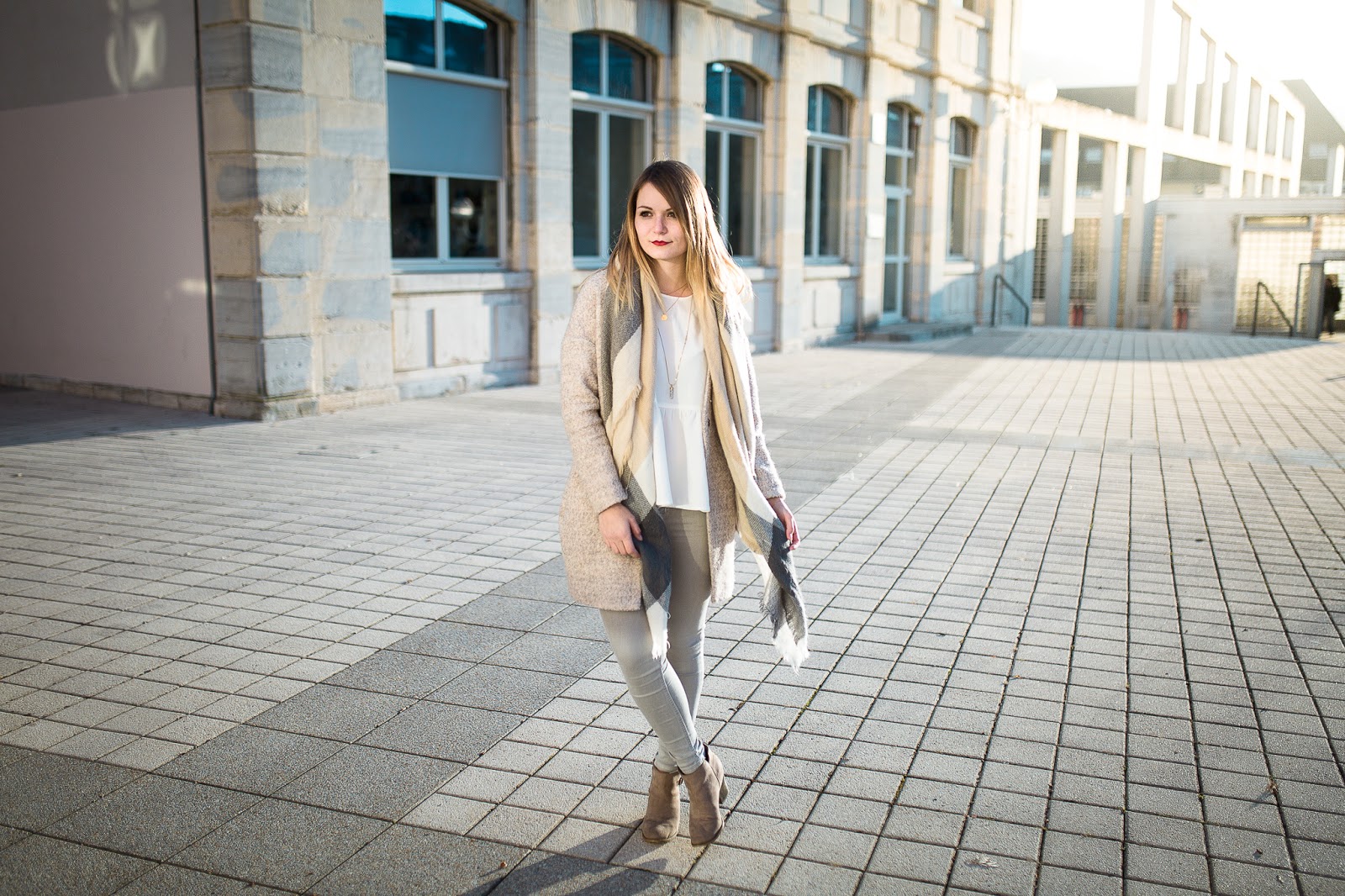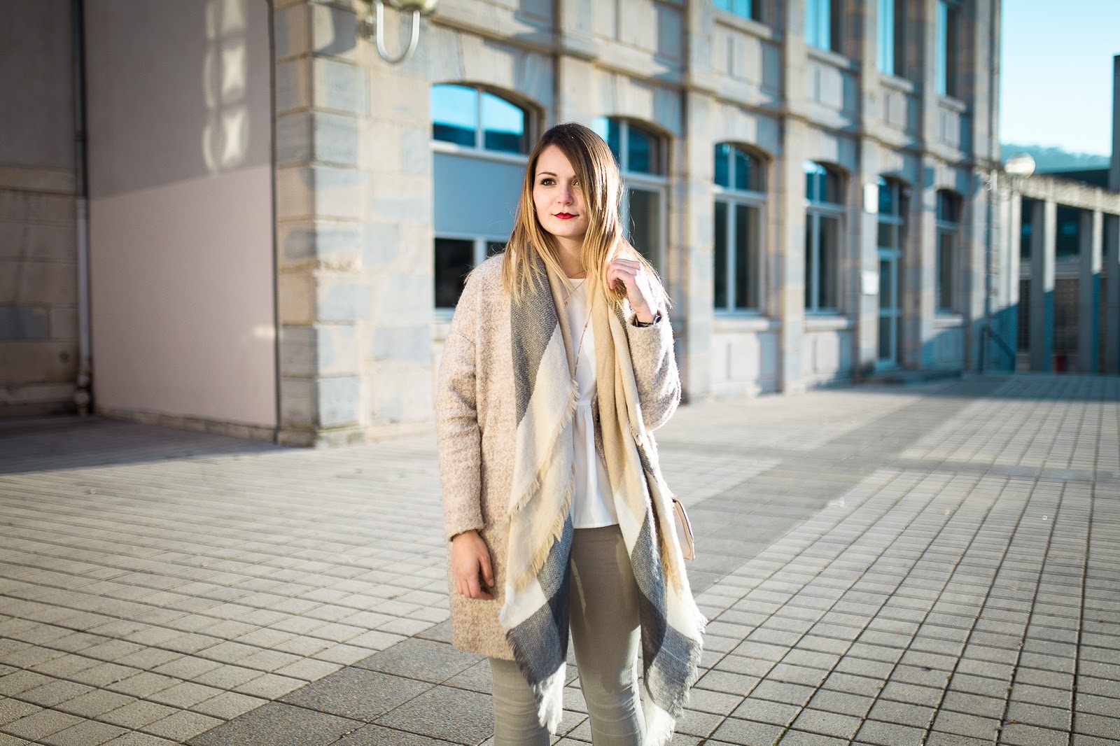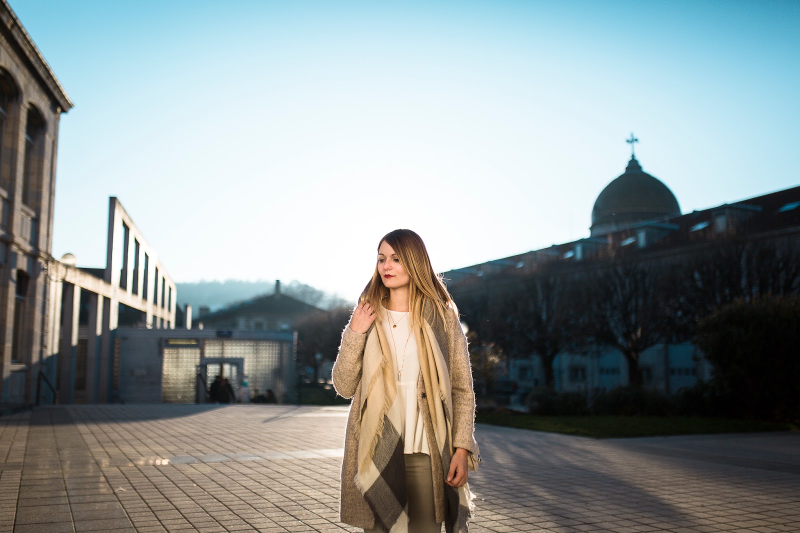 Un look nude dans une fraicheur quasi hivernale, au coucher du soleil : je remercie Maxime pour ces très jolies photos, qui changent de ce que je vous propose d'habitude. Je porte ici la version claire du top péplum Pimkie proposé en noir dans le dernier look.