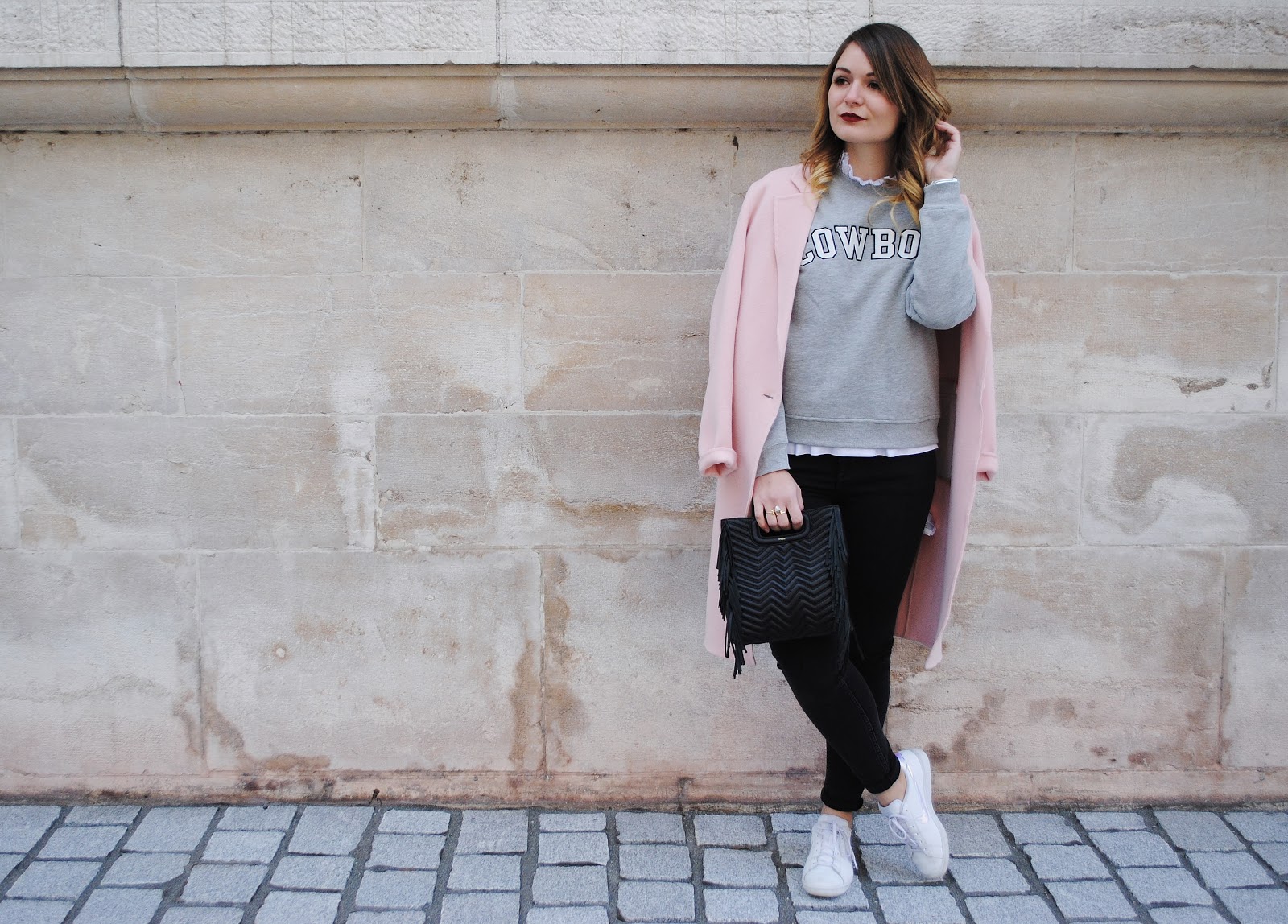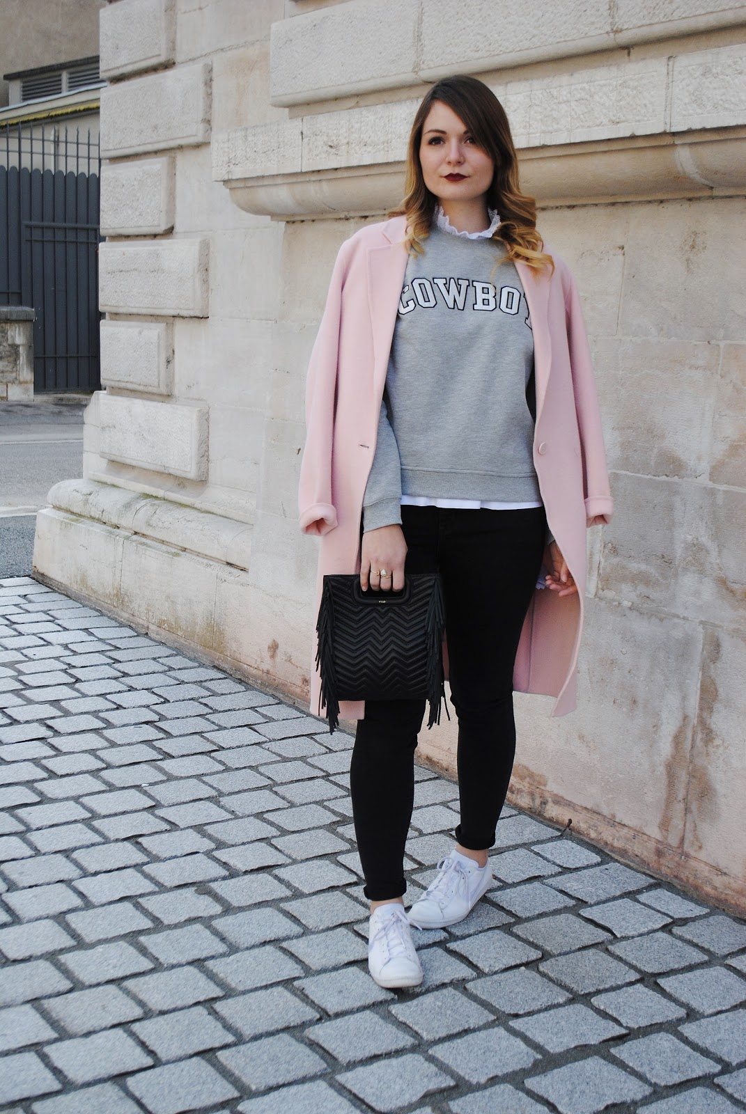 Le manteau rose, un incontournable depuis quelques saisons maintenant ! Et je m'essaye à la tendance grâce au deuxième look élaboré avec la boutique Suite 341 de Besançon. Gros coup de cœur sur ce qui s'avère être ma tenue chouchou parmi les trois proposées. J'adore les couleurs pastels en hiver et le rose apporte beaucoup de douceur. Quant à la blouse Sandro qui dépasse de ce sweat, c'est une vraie merveille, tant en version casual sous un pull que plus sexy avec un pantalon flare taille haute. Merci L'esprit Chic pour les photos, et n'hésitez pas à aller voir le premier look de la série (en cape camel et robe à empiècements dentelle).