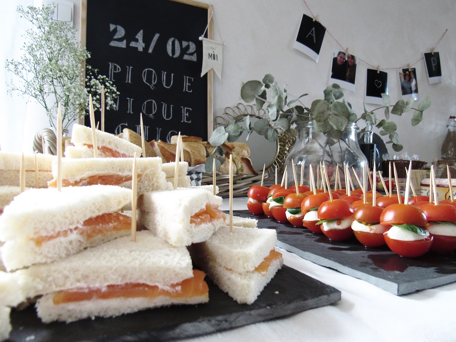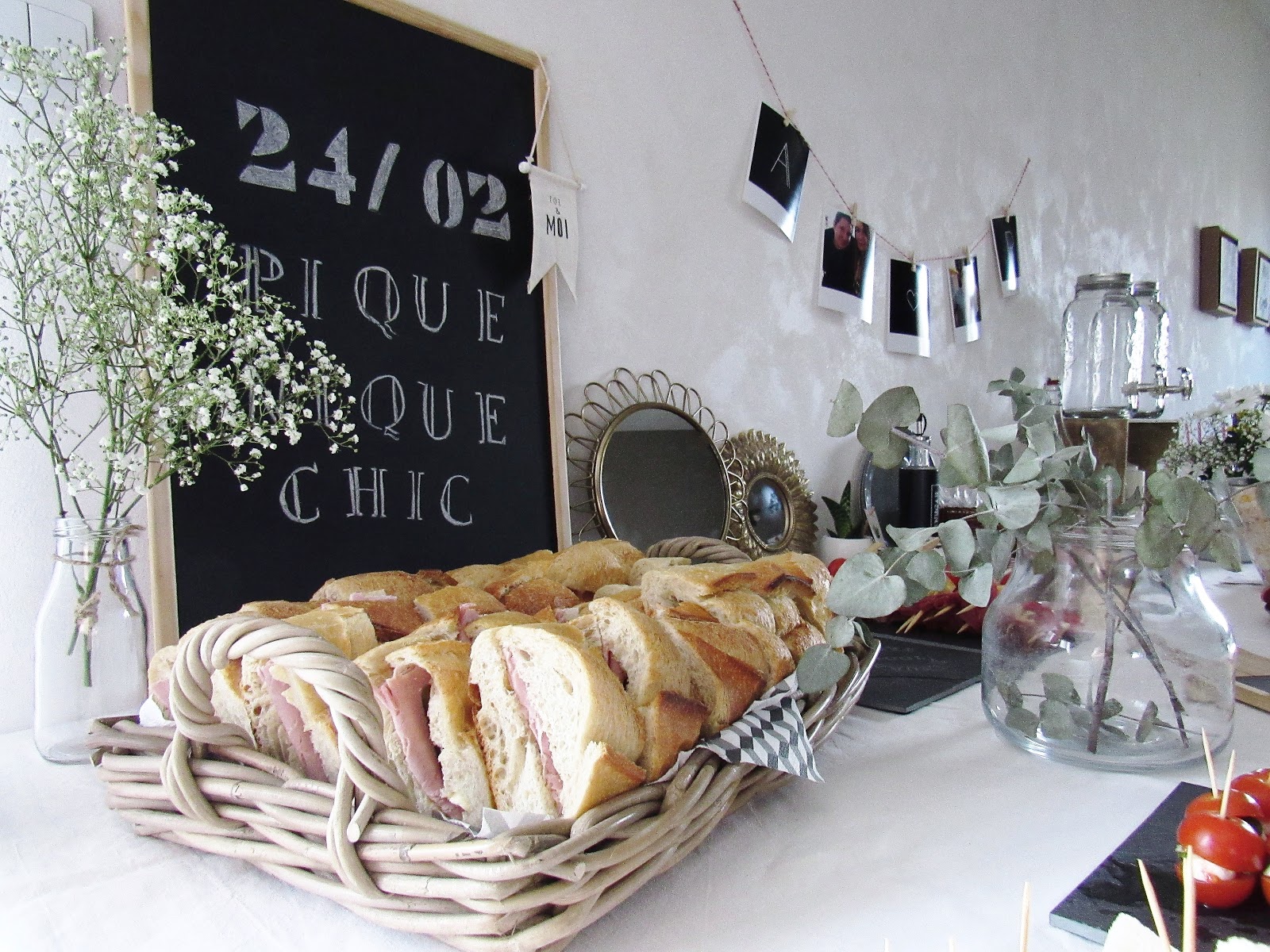 Le PACS pour nous c'était la première étape indispensable après l'achat de la maison. Même si l'acte est en soi très administratif (rien de très romantique le jour de la signature), on avait envie de marquer le coup et de préparer un repas avec nos familles respectives. Au départ on était parti sur quelque chose de simple et sur un apéro dinatoire, sans se poser plus de questions. Et c'est en parlant avec un collègue qu'il m'a donné l'idée d'un thème assez sympa : Pique-nique chic. L'occasion de préparer une table à base de cagettes, de fleurs champêtres et un repas fait de différents sandwichs, brochettes et cocktails. J'ai foncé sur l'idée et je vous ai rabâché le sujet chaque jour des deux dernières semaines sur snap. Merci de m'avoir supporté dans mon engouement et pour toutes les idées/photos/trouvailles que vous avez pu m'envoyer pour m'aider à préparer cette journée un peu spéciale.