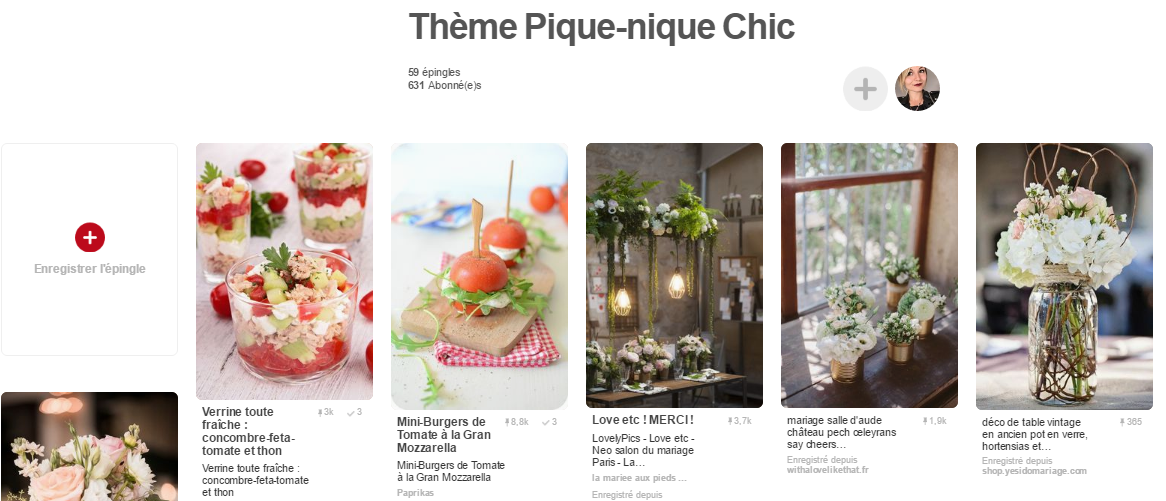 Ma source d'inspiration principale pendant ces deux semaines a vraiment été Pinterest. Ce site regroupe réellement toutes les plus belles photos et idées qui ont pu être faîtes sur cette terre. Vous pouvez d'ailleurs retrouver mes inspirations favorites dans mon tableau "Thème Pique-Nique Chic" en cliquant sur l'image ci-dessous :