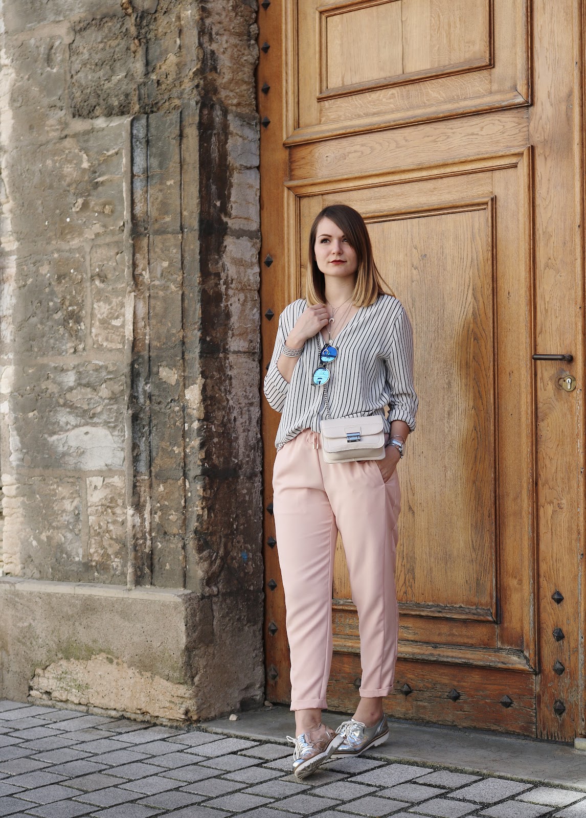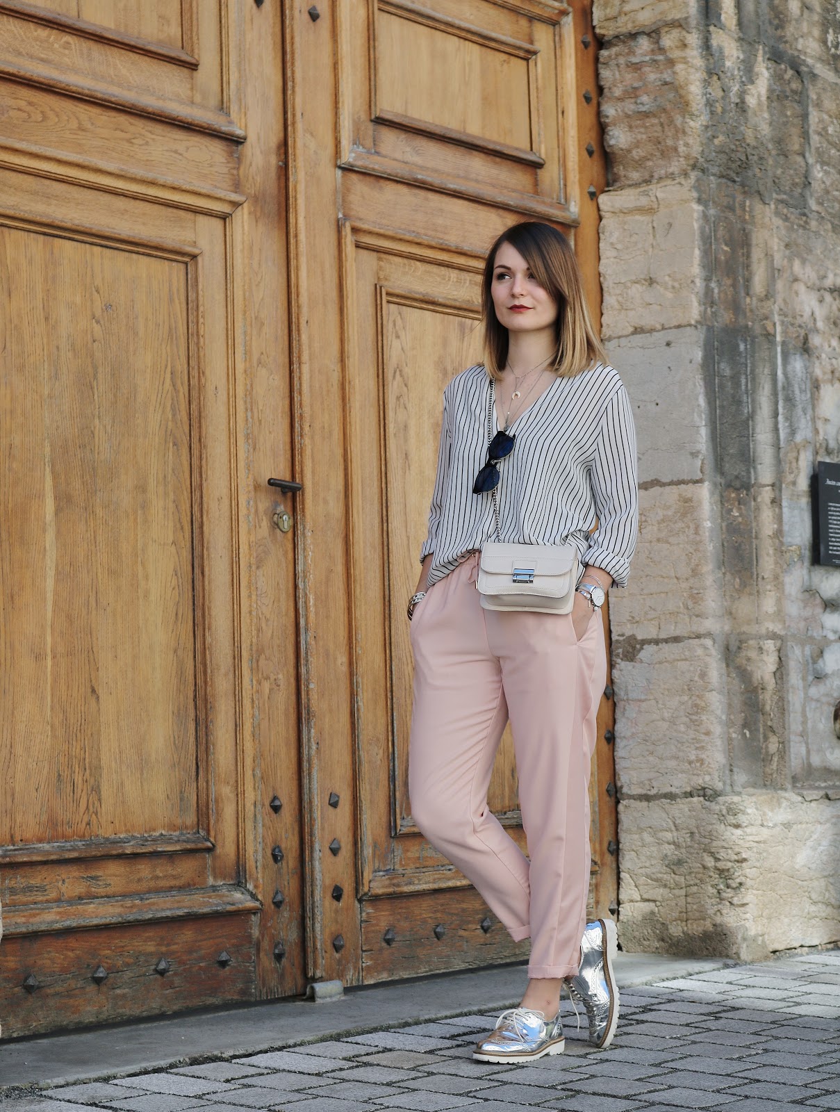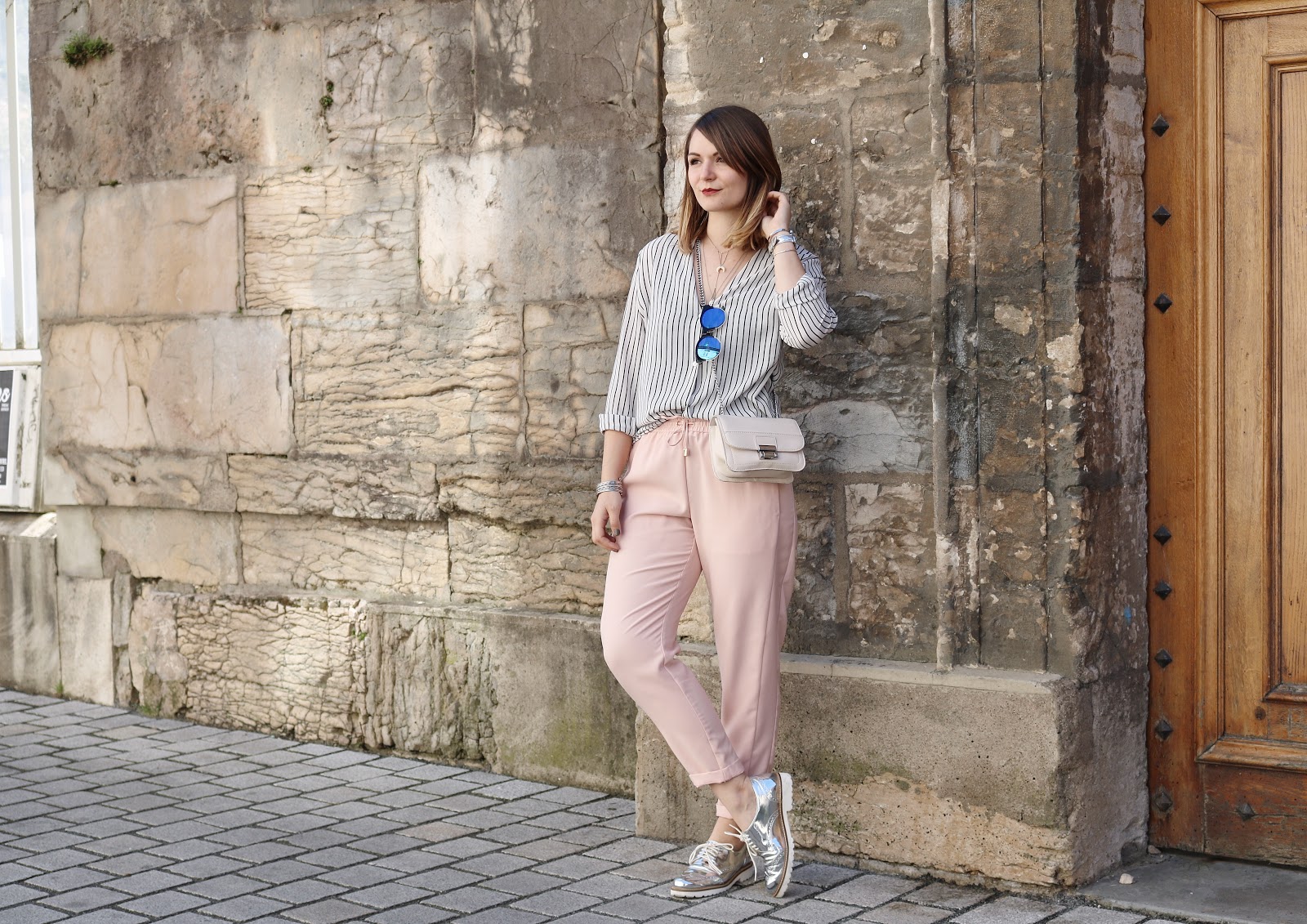 coucou Pauline, j'aime beaucoup l'asso du jogger rose avec les baskets métallisées !!!
