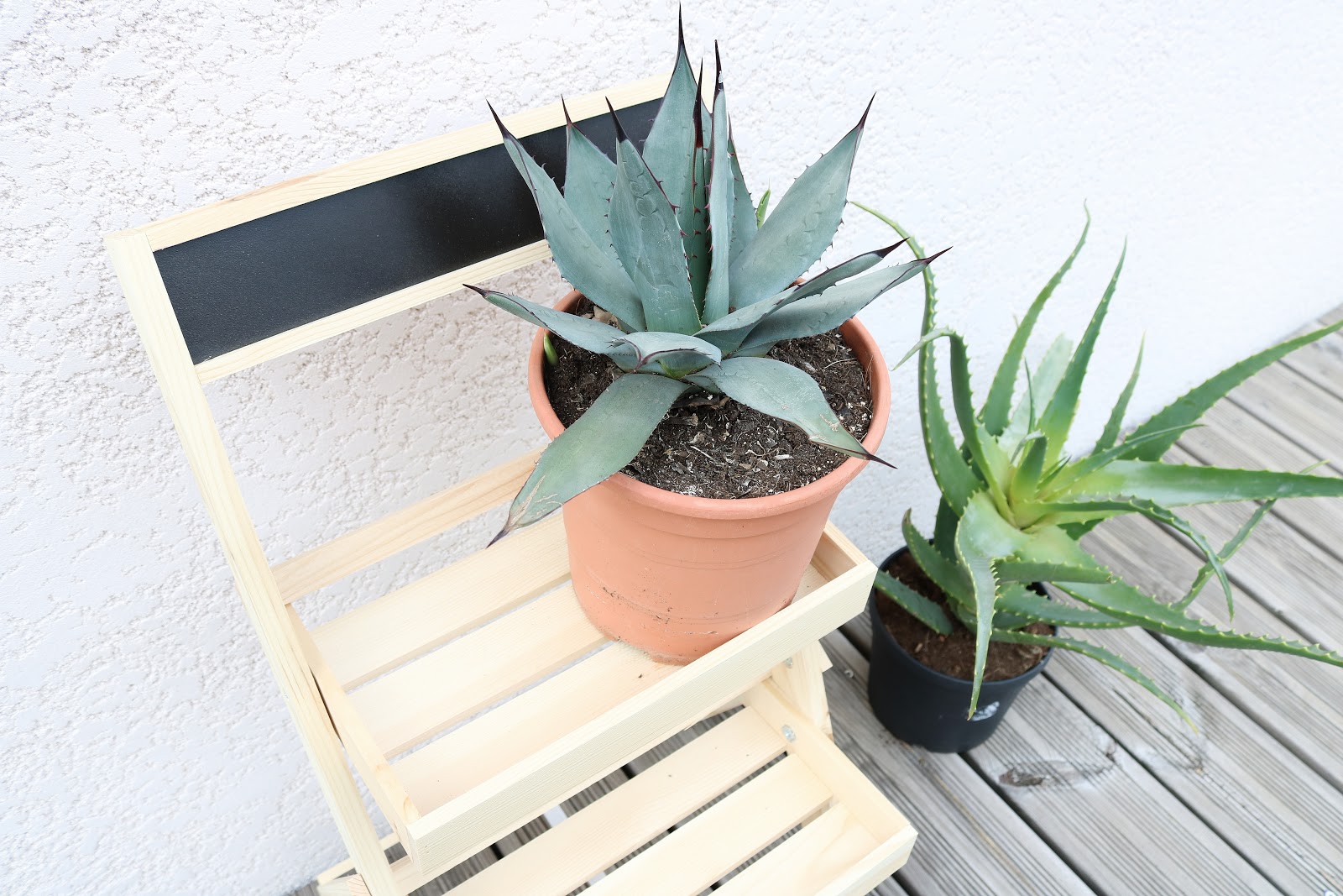 C'est également à Carrefour que j'ai trouvé ces plantes grasses pour 10 € l'unité. L'établi vient de Action et ne demande maintenant qu'à être décoré de plantes aromatiques, de cactus ou de déco en tout genre.