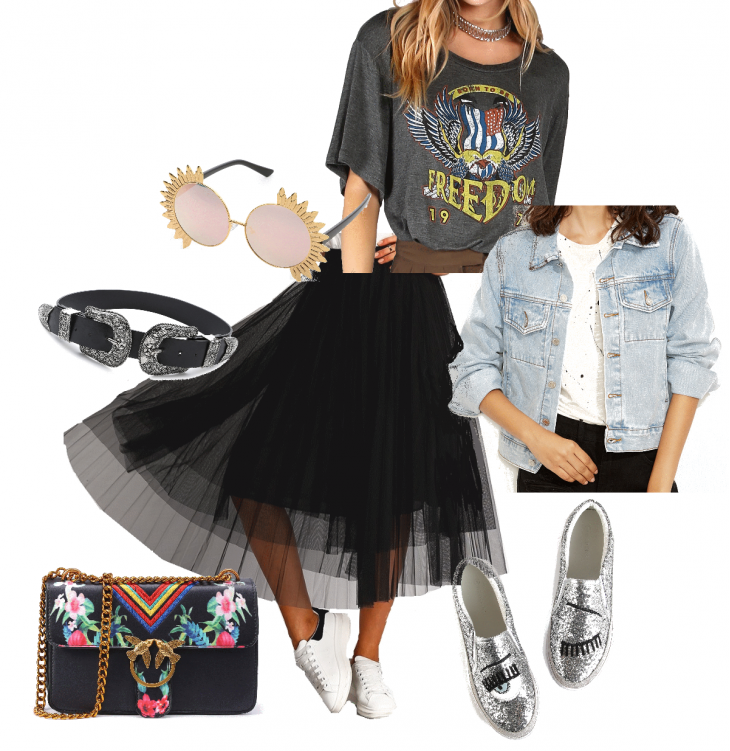 Au placard jeans, pantalons et autres joggers. Le soleil donne envie de mettre ses jambes à nues. Pas encore assez bronzée ? On fonce sur une jupe façon tutu mi-longue, qui camoufle les petits défauts tout en étant particulièrement agréable en cette partie de l'année. On le ceinture avec de grosses boucles argentés et on le féminise encore plus avec un sac très coloré. Le tee-shirt rock à la côte, on le choisit ample comme ici ou très échancré sur le côté. Un perfecto court ou une veste en jean, une paire de lunettes (originale) sur le nez et quelques paillettes aux pieds : le tour est joué !