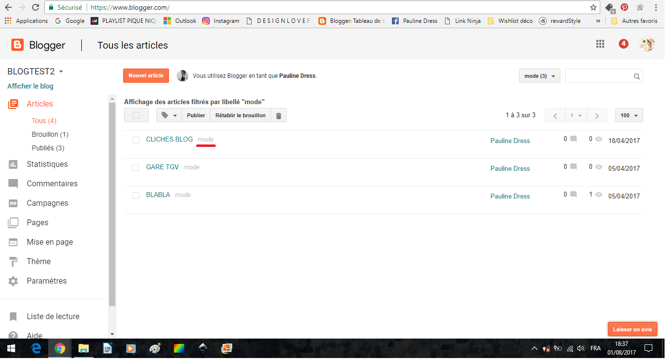 Pour créer des libellés, rien de plus simple. Dans la liste des articles que j'ai écrit, on voit par exemple que j'ai mis à chaque fois ce fameux libellé Mode.