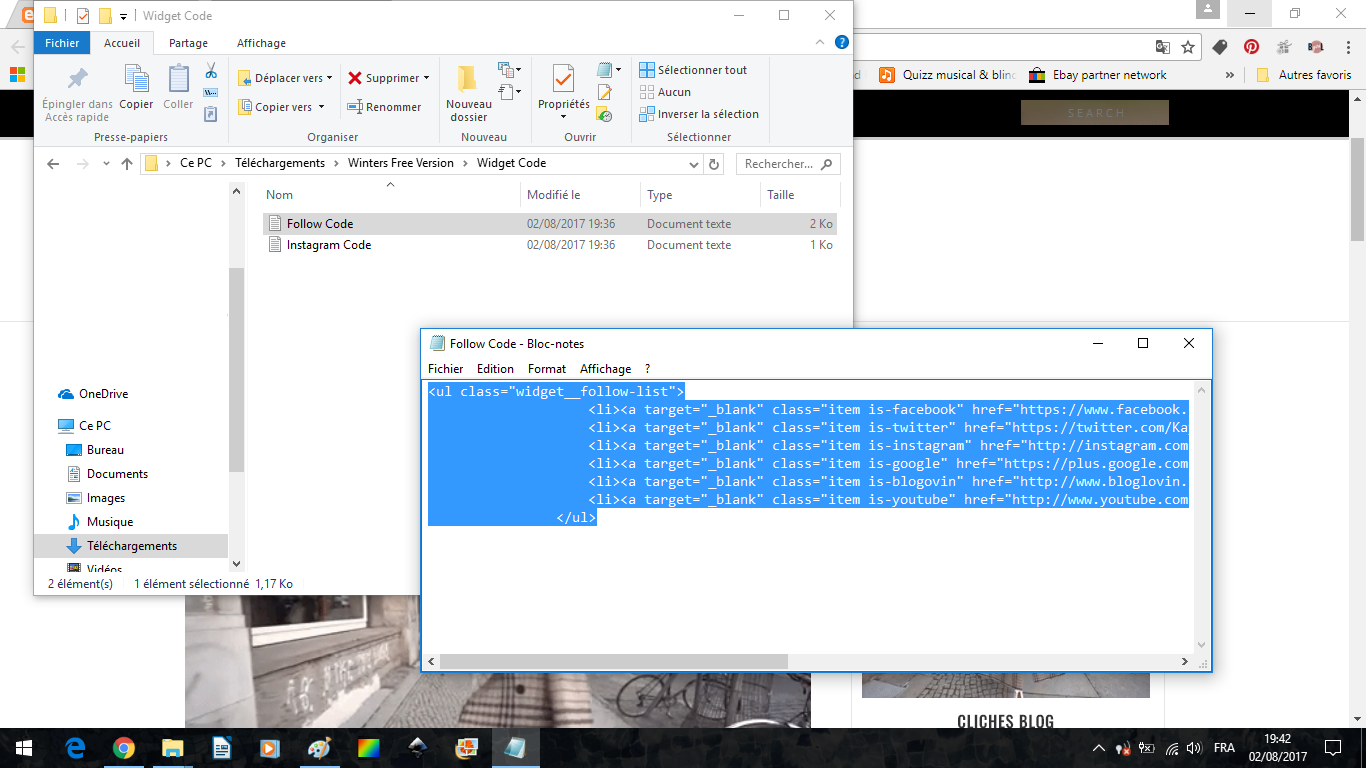 Téléchargez le thème. Dans le fichier obtenu, vous trouverez un dossier "Widget Code". Dedans vous trouverez le fichier "Follow Code", ouvrez-le :