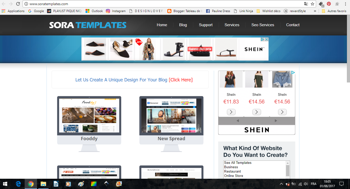 Vous me demandez souvent comment créer un joli design de blog sous Blogger, ou comment réaliser une barre avec un menu déroulant. La démarche est assez simple (même si elle peut un peu effrayer au départ les plus novices), il suffit de comprendre le fonctionnement et de filer sur le site Sora Templates pour y trouver le modèle que l'on préfère.