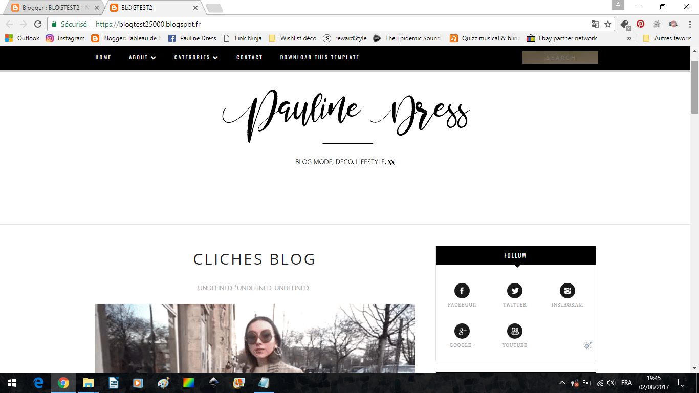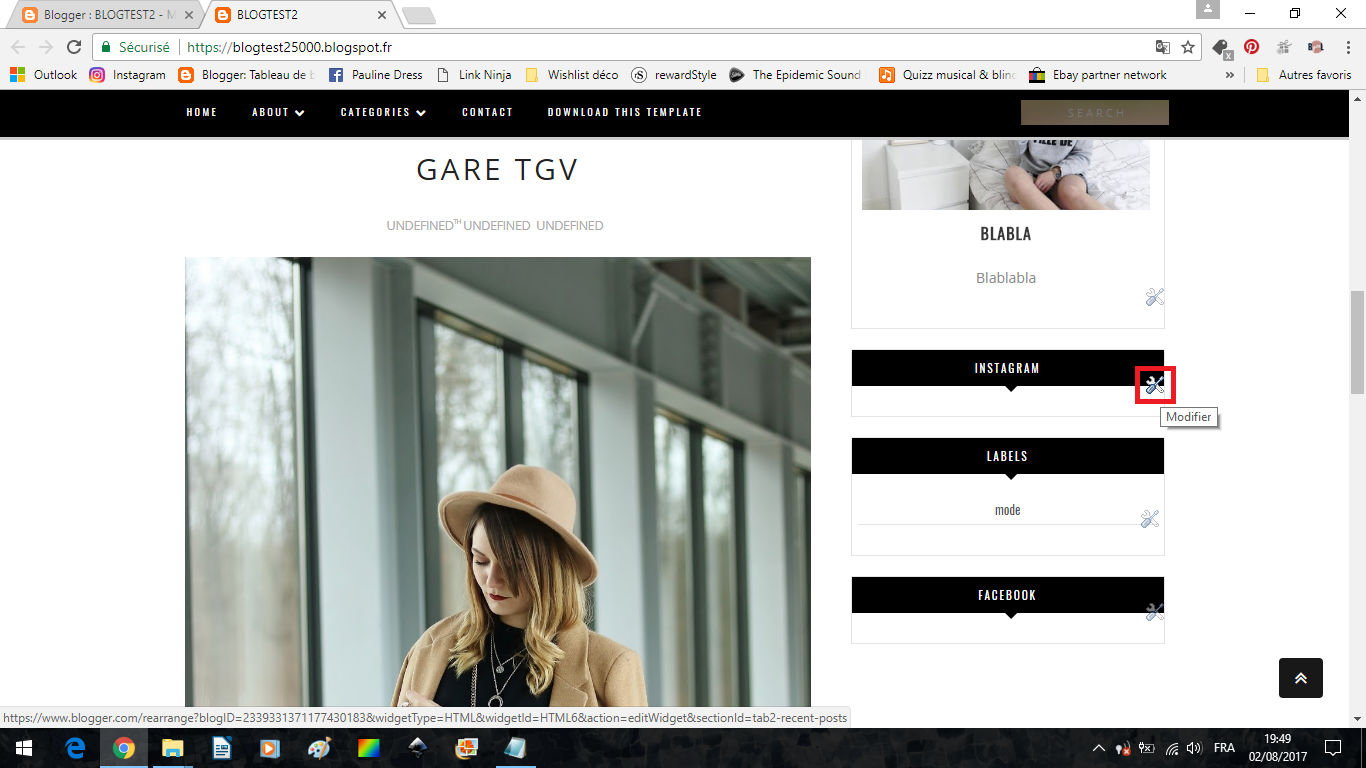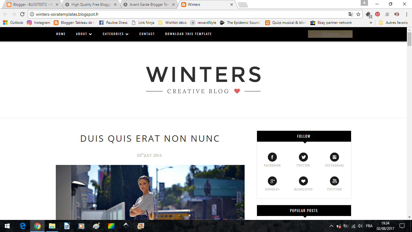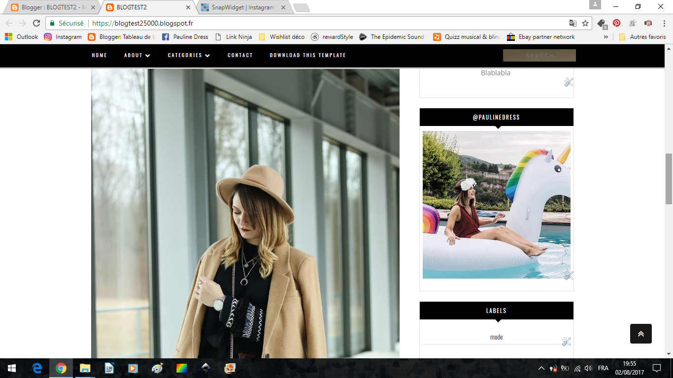 Rendez-vous sur votre blog. Pour plus de sécurité, et si c'est la première fois que vous tentez le coup, créez un blog Test : un blog bien différent du vôtre, qui servira juste à tester les modèles et à bien maîtriser l'installation avant de les appliquer à votre blog principal. Créez-y de faux articles avec des photos pour faire l'illusion au maximum d'un vrai blog avec du contenu.