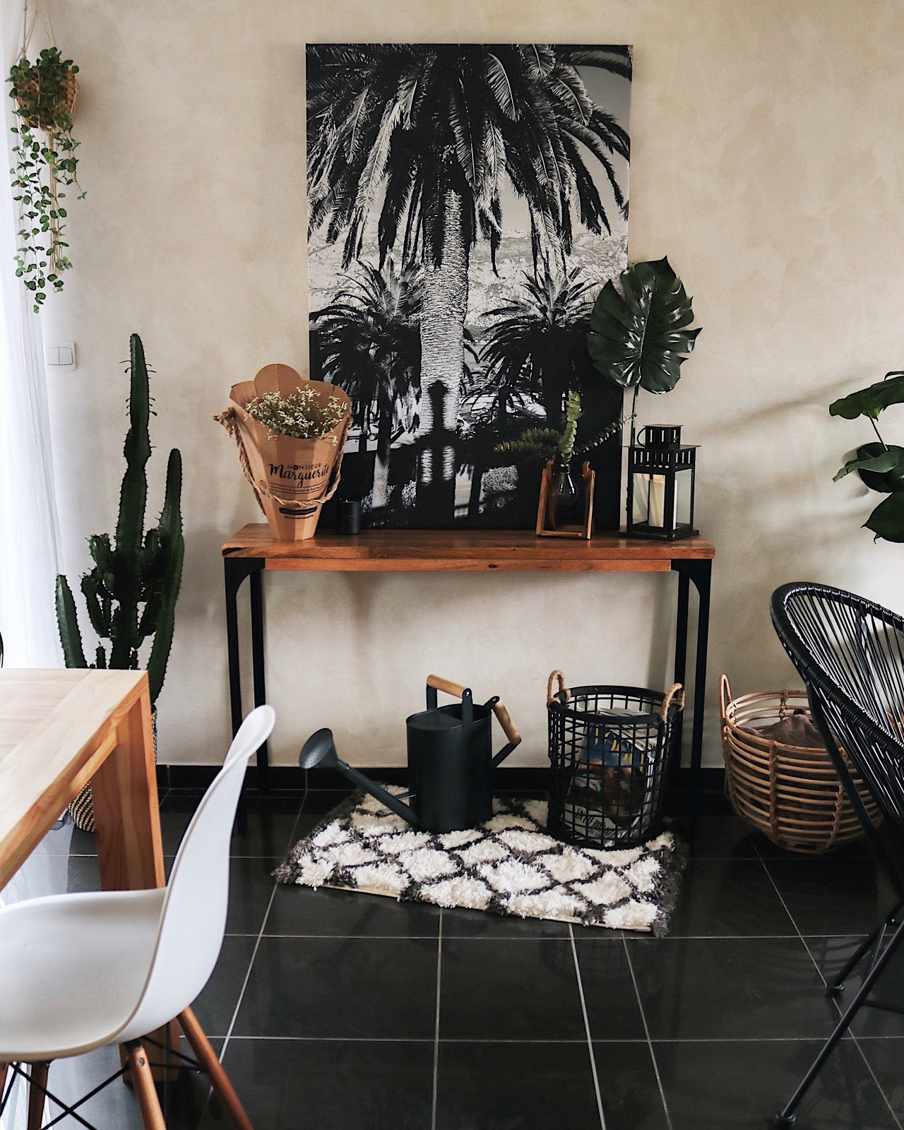 J'ai découvert ce site beaucoup plus récemment, lorsque la boutique m'a contacté pour tester l'un de leurs produits. C'est ainsi que je me suis retrouvée avec cette toile immense imprimée de palmiers. C'est en recevant le carton que je me suis rendue compte que je m'étais un peu emballée sur la toile : on ne peut pas forcément caser n'importe où une toile de 1m20 de hauteur. Mais elle a fini par totalement trouver sa place sur cette console, et apporte une touche de caractère incroyable au salon.