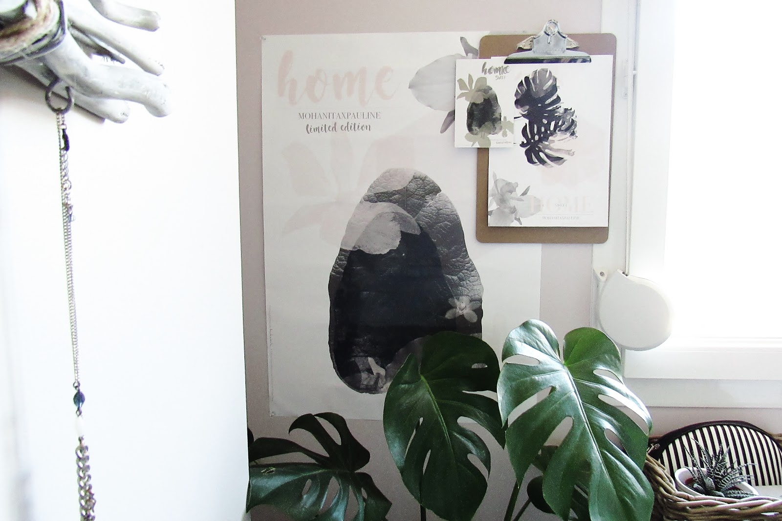 Je ne suis pas totalement objective puisque j'ai eu la chance de travailler avec cette formidable artiste qu'est Mohanita. Cette créatrice d'affiches et de textiles créée elle même ses designs. Notre collaboration regroupait une grande affiche, une petite carte et un format A4, le tout orné de feuilles et de rose gold. De vraies merveilles !