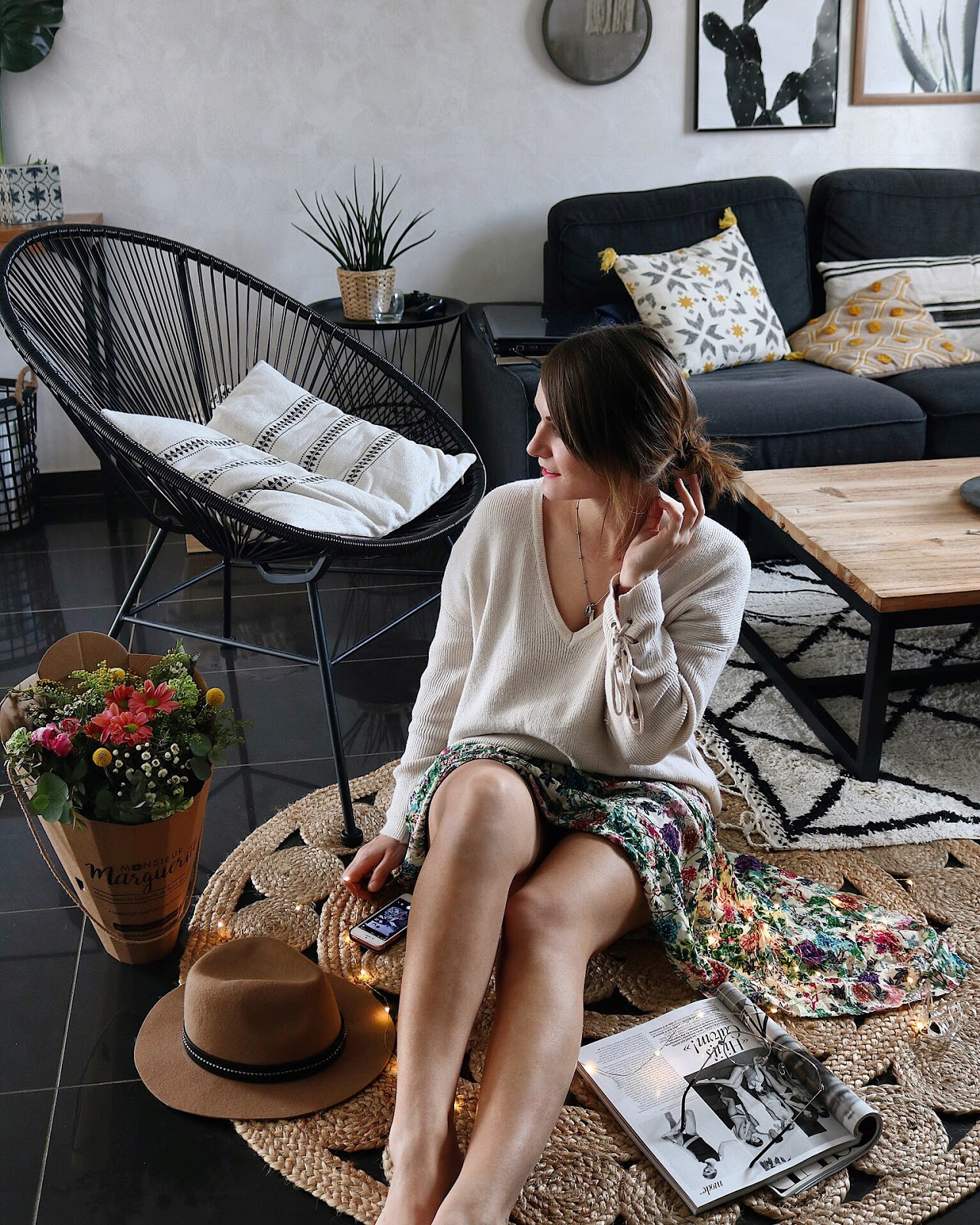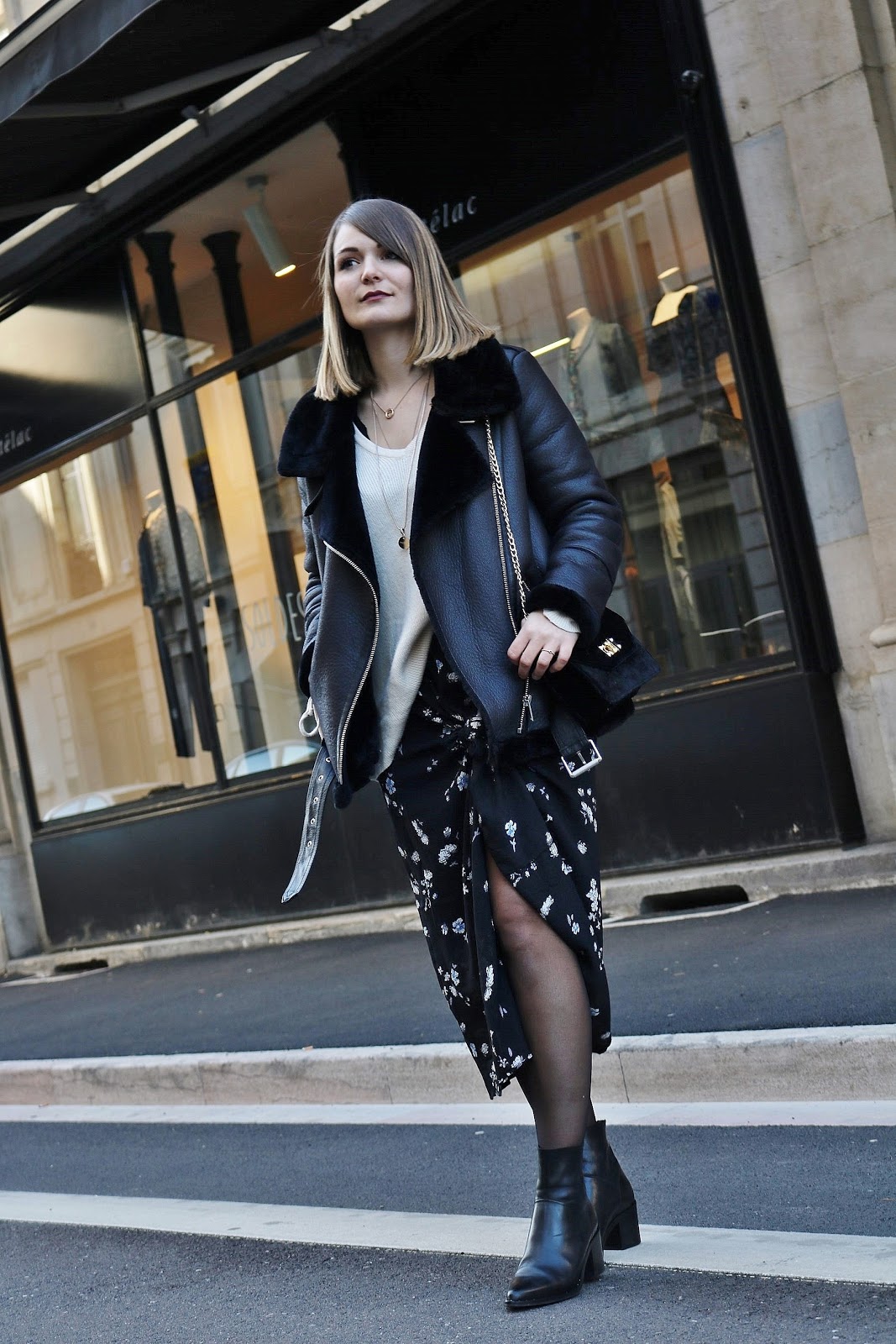 BOMBARDIER - PIMKIE / PULL COSY - PRETTY WIRE / ROBE FLEURIE - BOOHOO / SAC - SHEIN / BOTTINES - JONAK / COLLIER - JOLIE DEMOISELLE