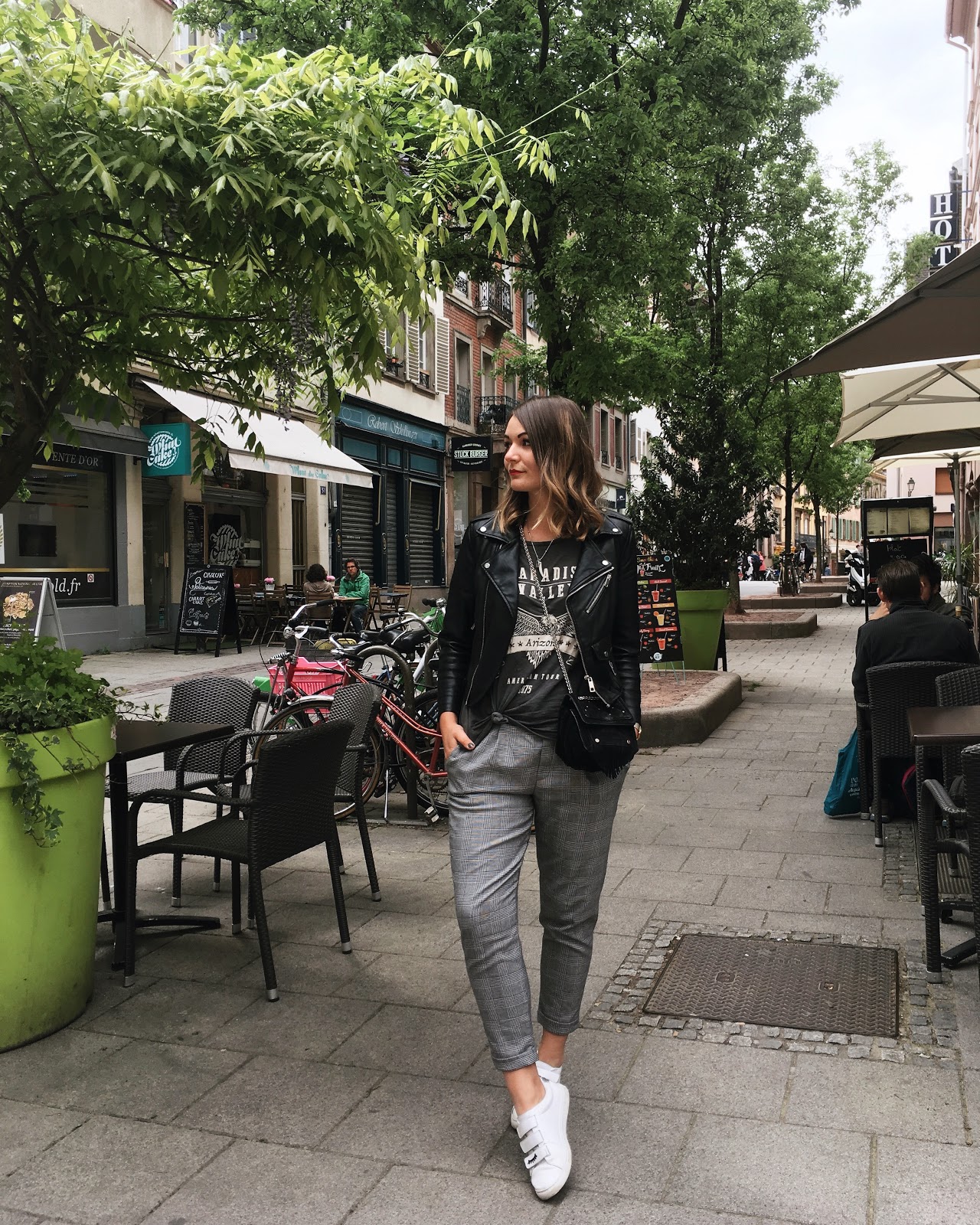 LOOK INSTA : TEE-SHIRT - MANGO / PERFECTO - ZARA / JOGGER - BERHSKA / BASKETS - BONS BAISERS DE PANAME / SAC - CLAUDIE PIERLOT.