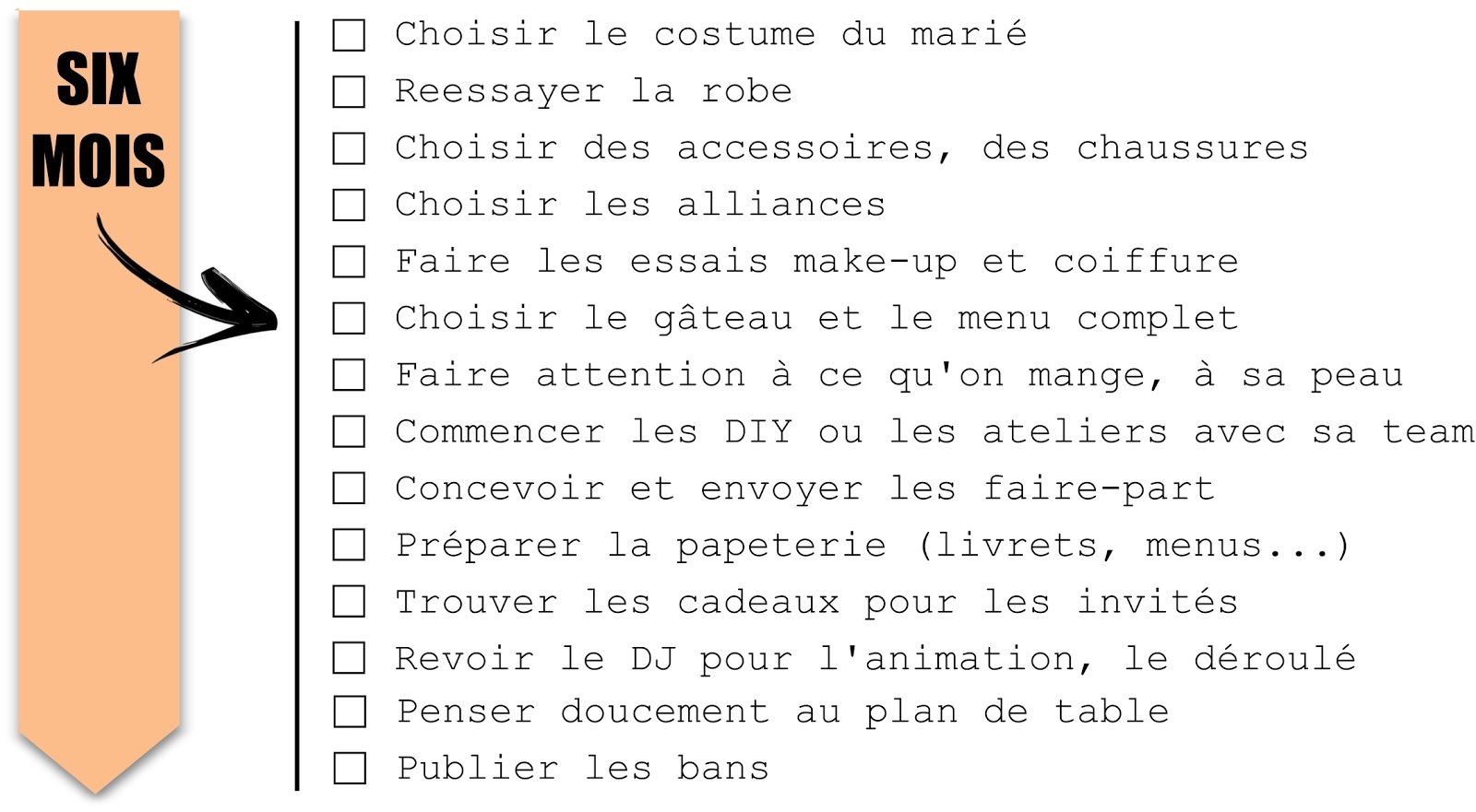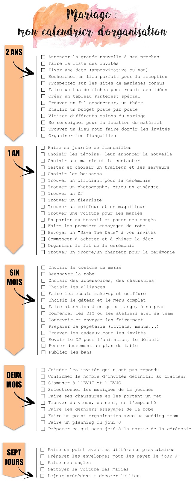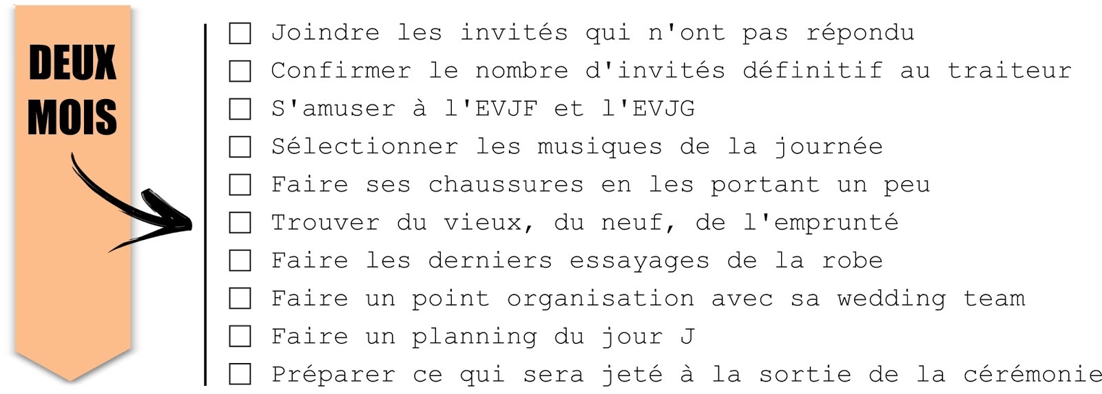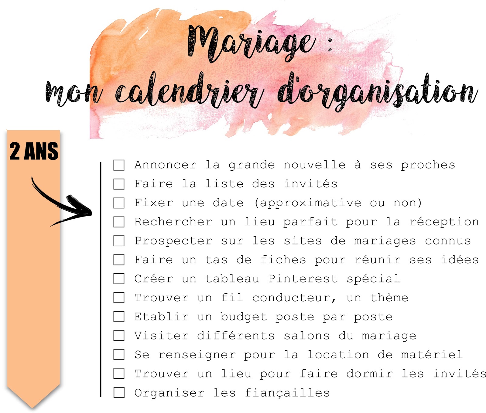 MON CALENDRIER DE TÂCHES POUR LE MARIAGE