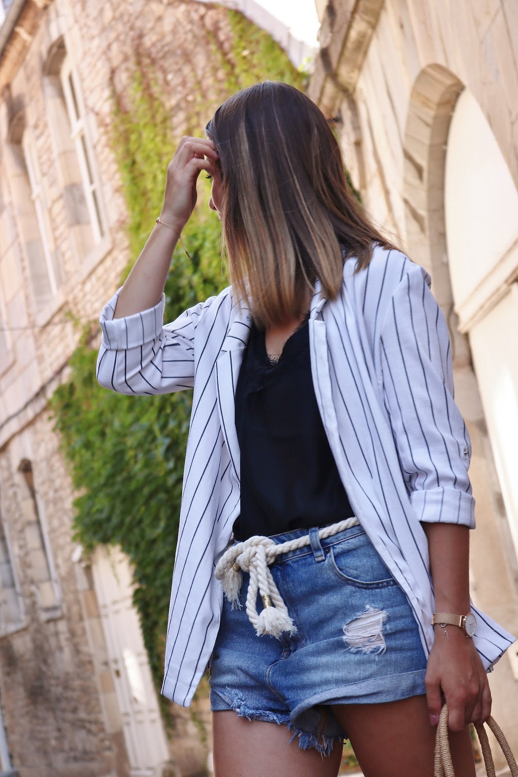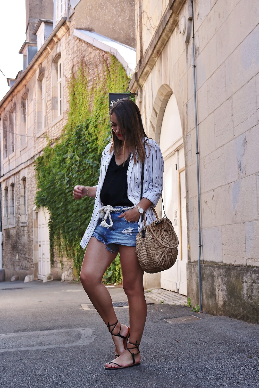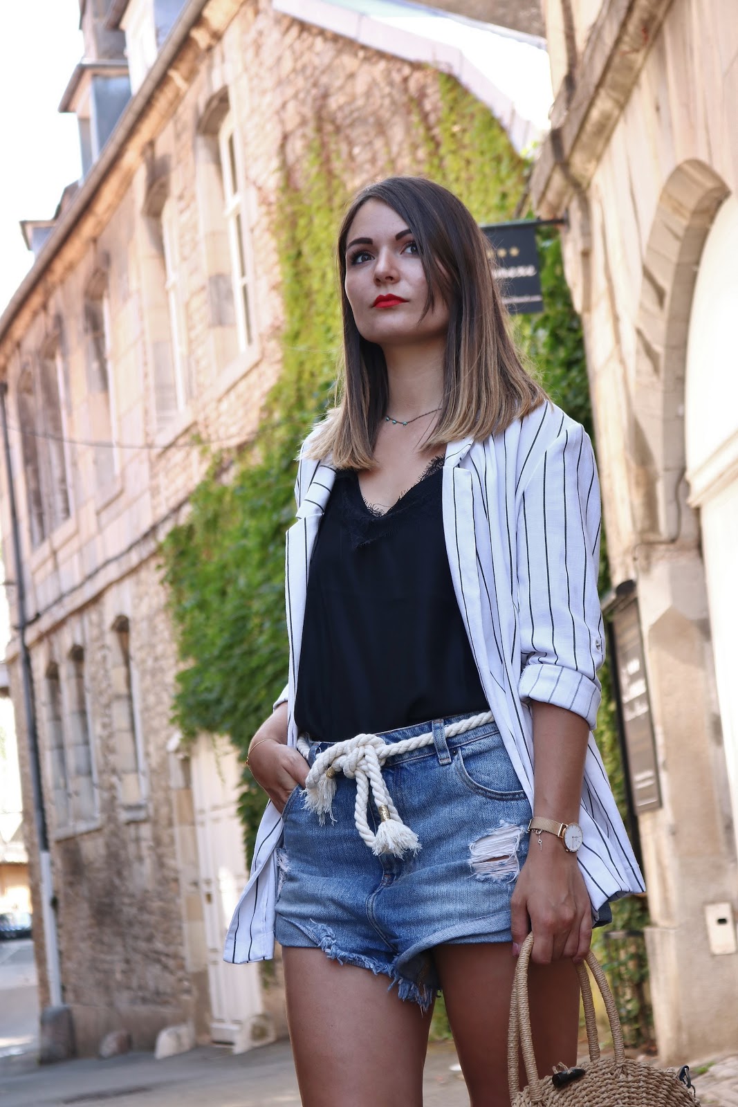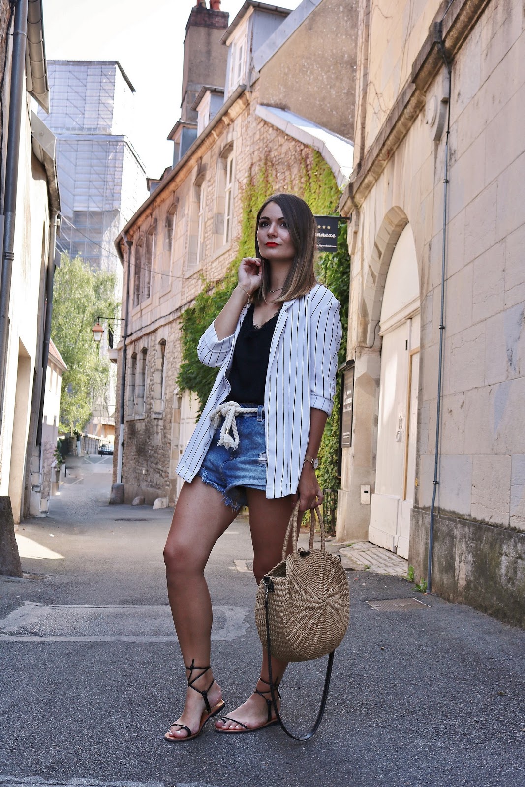 Je suis partie sur un look ultra basique mais que j'adore porter en été. Le short en jean vient de Asos et je l'ai pris deux tailles au-dessus pour qu'il ait cette coupe assez oversize. Depuis le temps que je cherchais une ceinture corde j'ai trouvé mon bonheur dans la collection Orta Stora X Lisa Germaneau. Le top est un caraco tout simple trouvé sur Shein il y a très peu de temps et le blazer est un Bershka mais d'une ancienne co (il me semble tout de même que vous pouvez toujours le trouver en magasin). Enfin les chaussures viennent de Shein, je les ai depuis l'an dernier et la qualité est incroyable, elles sont même très agréables à porter. Je viens de craquer et de les commander en marron, je vous mets le lien des deux paires ci-dessous !