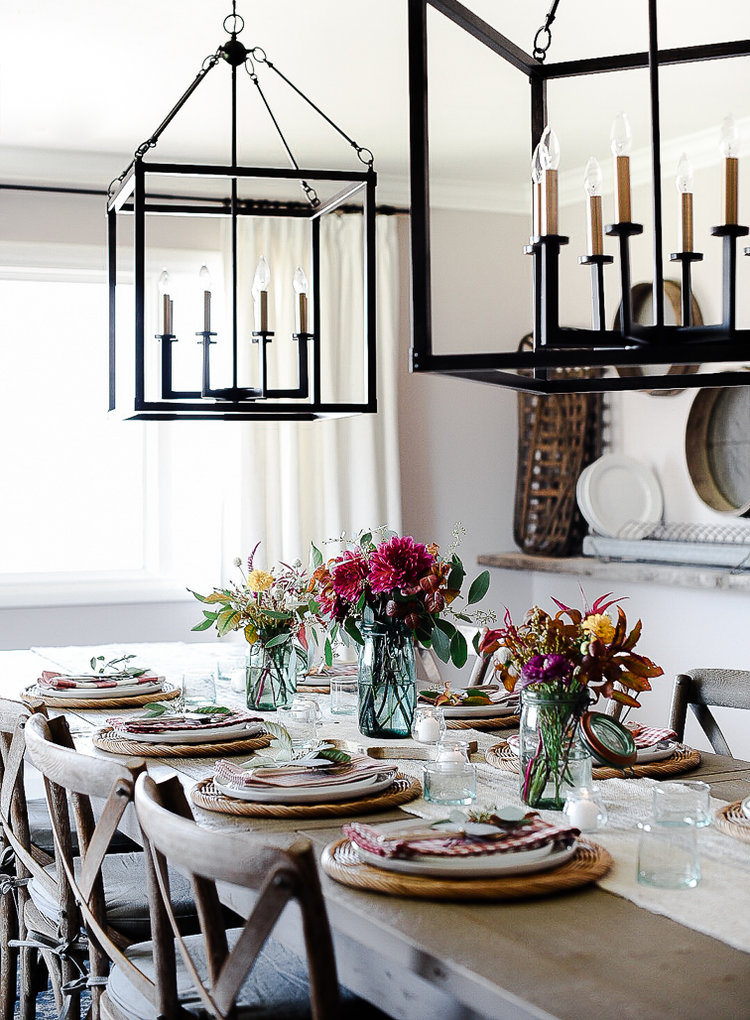 L'idée des assiettes émaillées est excellente : c'est complètement tendance et ça rajoute une pointe de couleur. J'aurais vu le bleu un poil plus foncé, mais je note aussi l'idée des chandeliers qui apportent de la hauteur. Et comme je vous le répète à chaque fois : donner de la hauteur à une table est primordial !
