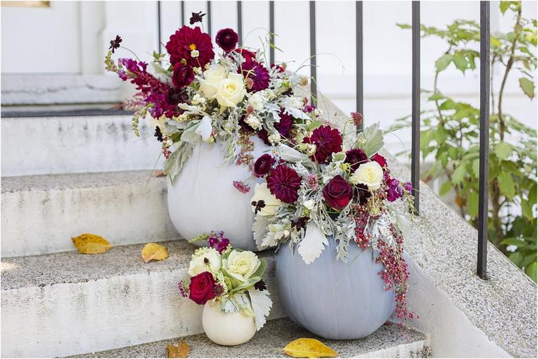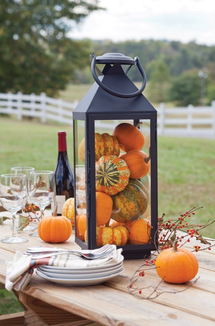 On note l'idée hyper simple à réaliser : la lanterne remplie de citrouilles ou de fleurs.