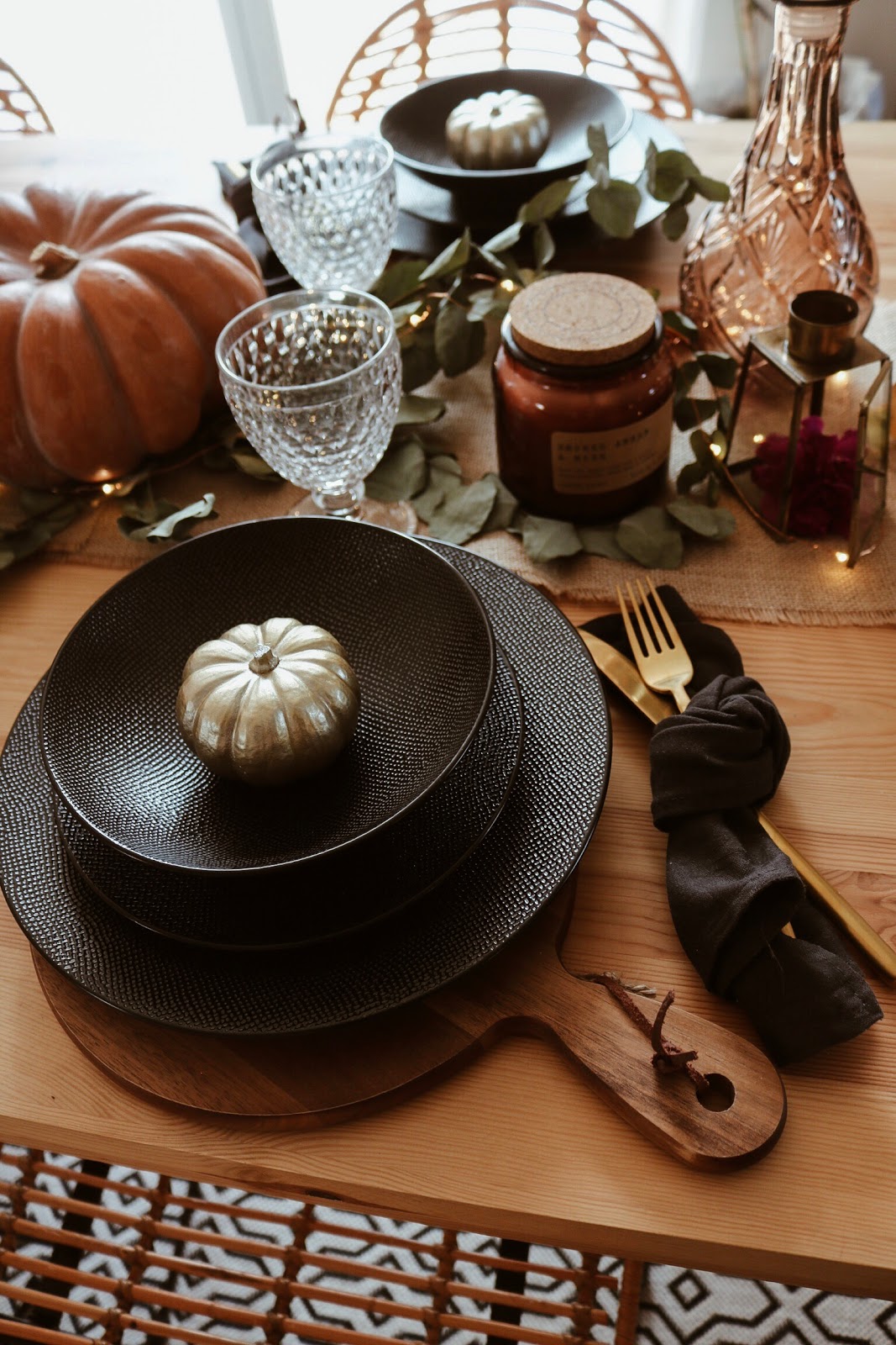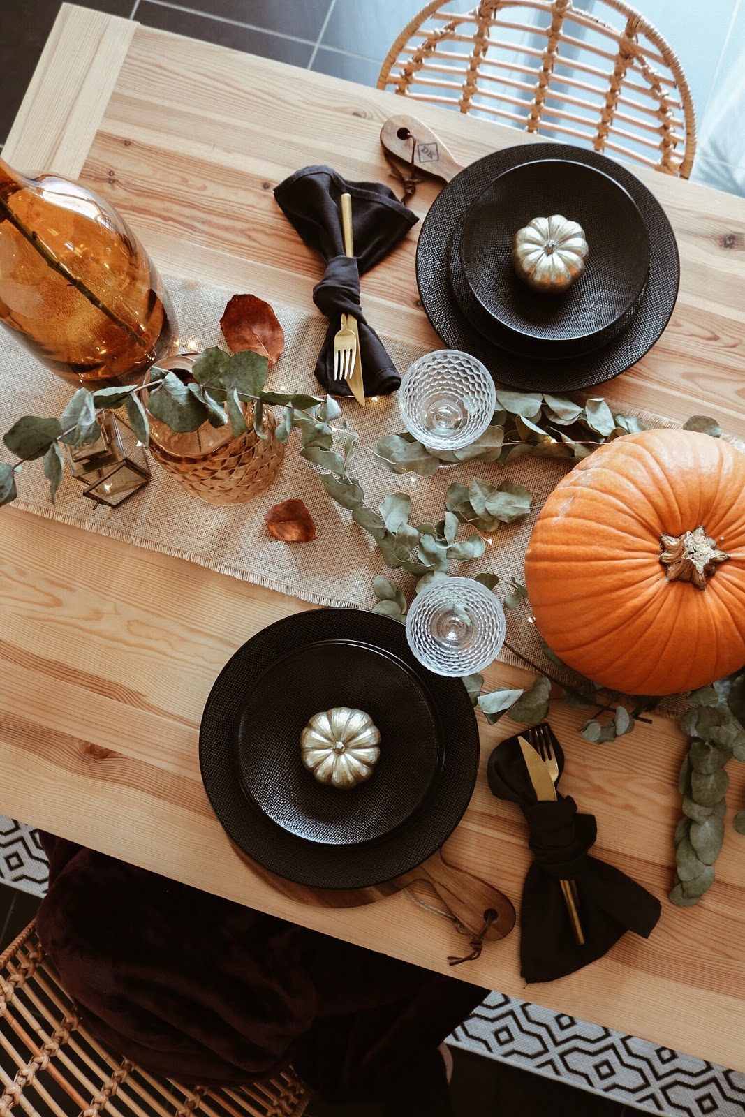 Et vous, prêts à faire votre table pour le 31 ? Les idées faciles à emprunter à cette table : des planches en bois comme dessous d'assiettes, les citrouilles et l'eucalyptus en centre de table, la disposition des serviettes. N'hésitez pas à me partager la votre sur Insta ou Facebook, je me ferai une joie de voir tout ça. Vous pouvez également retrouver mon article d'inspirations juste Ici, si vous voulez davantage d'idées. On se retrouve vite, des bisous,